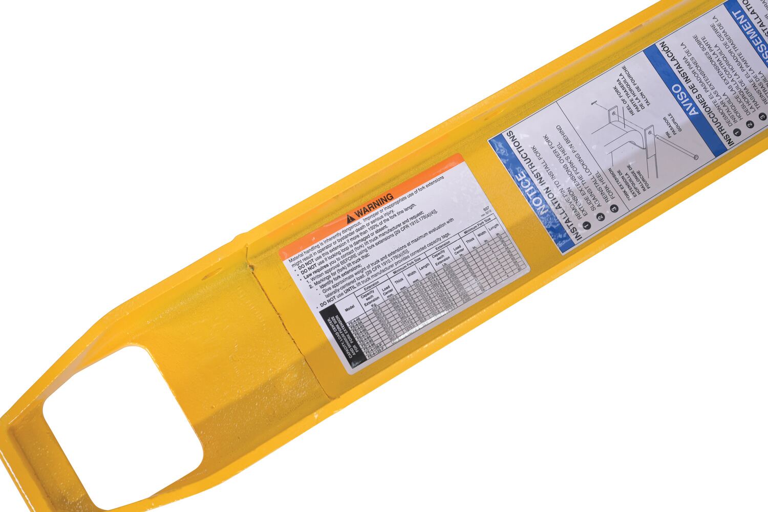 FE-5-96-P FE-5-96-PSteel Pin Style Fork Extensions 5 In. x 96 In. 4,000 Lb. Capacity YellowUniform Capacity Per Pair (lb.): 4,000