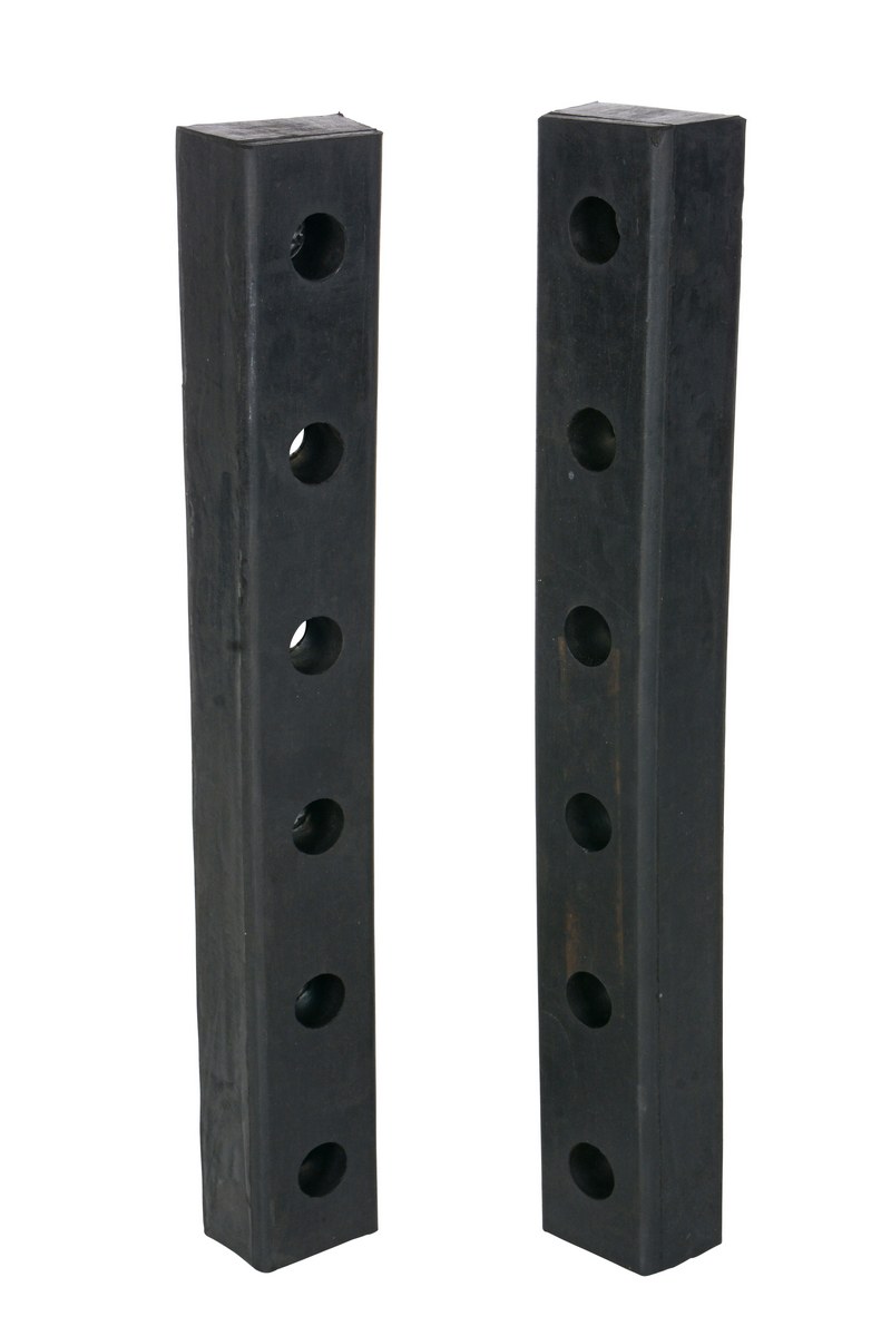 These pre-drilled bumpers are constructed of fiber reinforced rubber containing nylon and polyester for all weather conditions. Provides high impact resistance. Steel reinforcement rings are molded into each bumper for installation. Uses 5/8" anchor bolts. Sold individually. Order installation hardware separately.