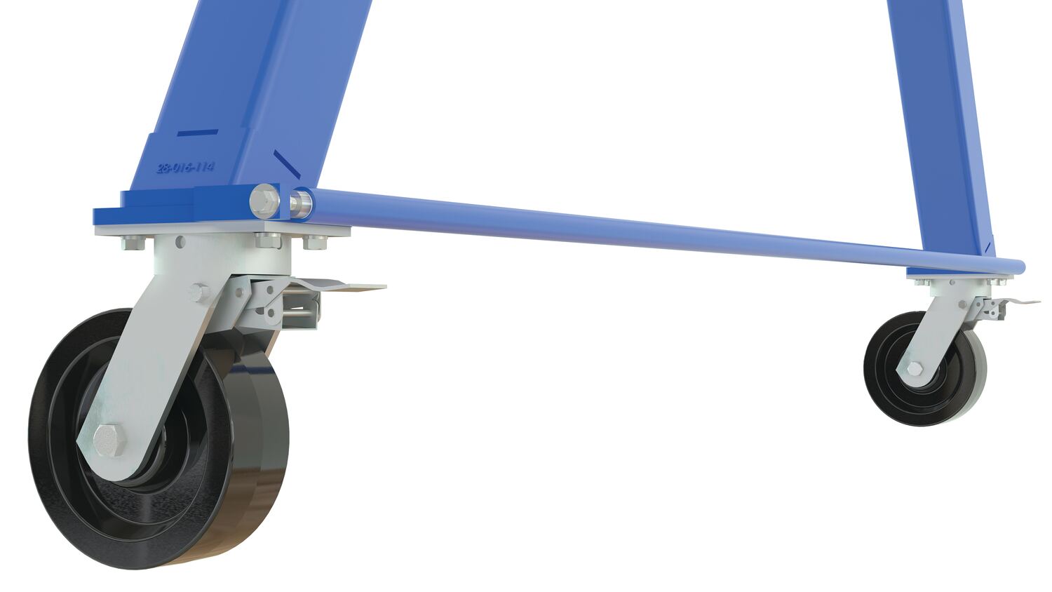 Steel Knock-Down Adjustable Height Gantry Crane with Total Locking Phenolic Casters 15 Ft. Wide x 16 Ft. Max Usable Height 8,000 Lb. Capacity BlueThe adjustable height steel gantry crane is designed for transporting and positioning materials along the beams length. The cranes beam height can be adjusted to better conform to the working conditions making it both ergonomically friendly and cost effective. Unit comes standard with total locking casters. Height is adjustable in 6" increments. Do not move units while loaded. Hoist and trolley can be ordered separately. A painted blue finish protects the unit. Designed for semi-permanent or permanent applications.
