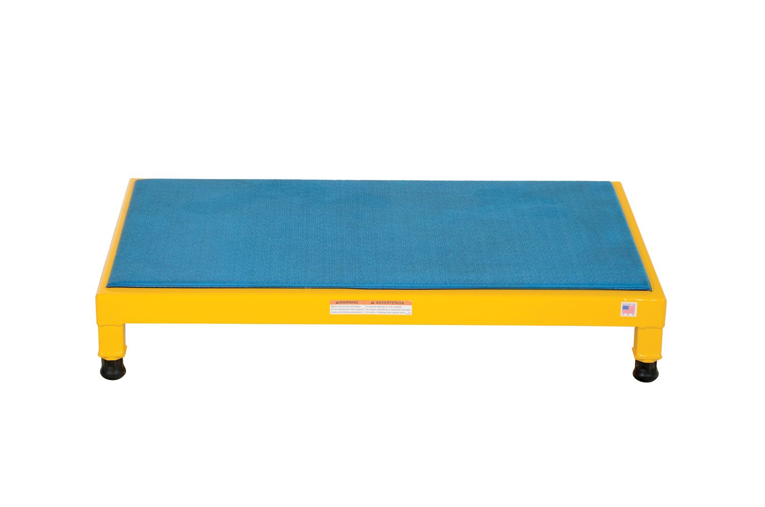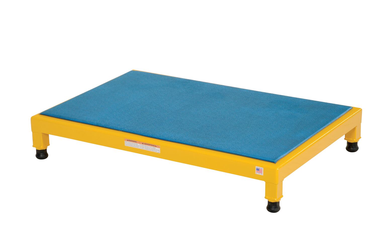 The adjustable work-mate stand minimizes fatigue by elevating workers to heights that are comfortable and ergonomically correct. Especially useful when multiple shift employees operate the same piece of machinery. The ergonomic matting deck style provides comfort for the operator who stands all day. The height of each leg can be adjusted individually to ensure proper working height.