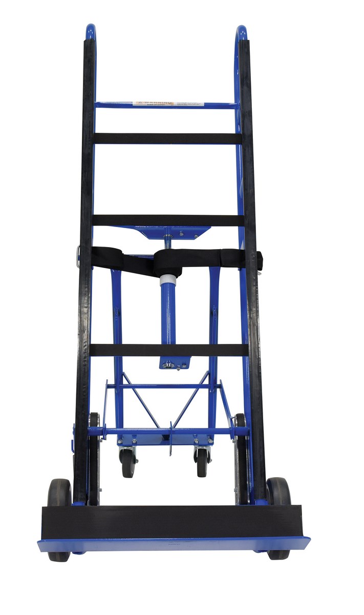 Steel Ratchet Appliance Cart 17 In. x 24 In. x 60 In. 1200 Lb. Capacity BlueThis appliance and vending machine cart is ideal for moving large, bulky, heavy appliances, and awkward loads. A strap and tension bar are included with this unit to hold the product in place while transporting up or down stairways, hills, or uneven surfaces. Great for moving and maneuvering vending machines throughout workspace.