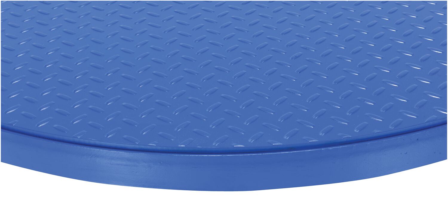 Steel 60 In. Carousel, 2K Capacity, Round Tread Top Plate BlueThis manual carousel rotates material with the assistance of an operator. Now, loading and unloading operations can be done more efficiently minimizing fatigue and risk of back injury. The carousel may be added to an existing work bench, scissor table, or simply placed on the floor. A steel constructed top plate is included with the carousel for enhanced stability during use.