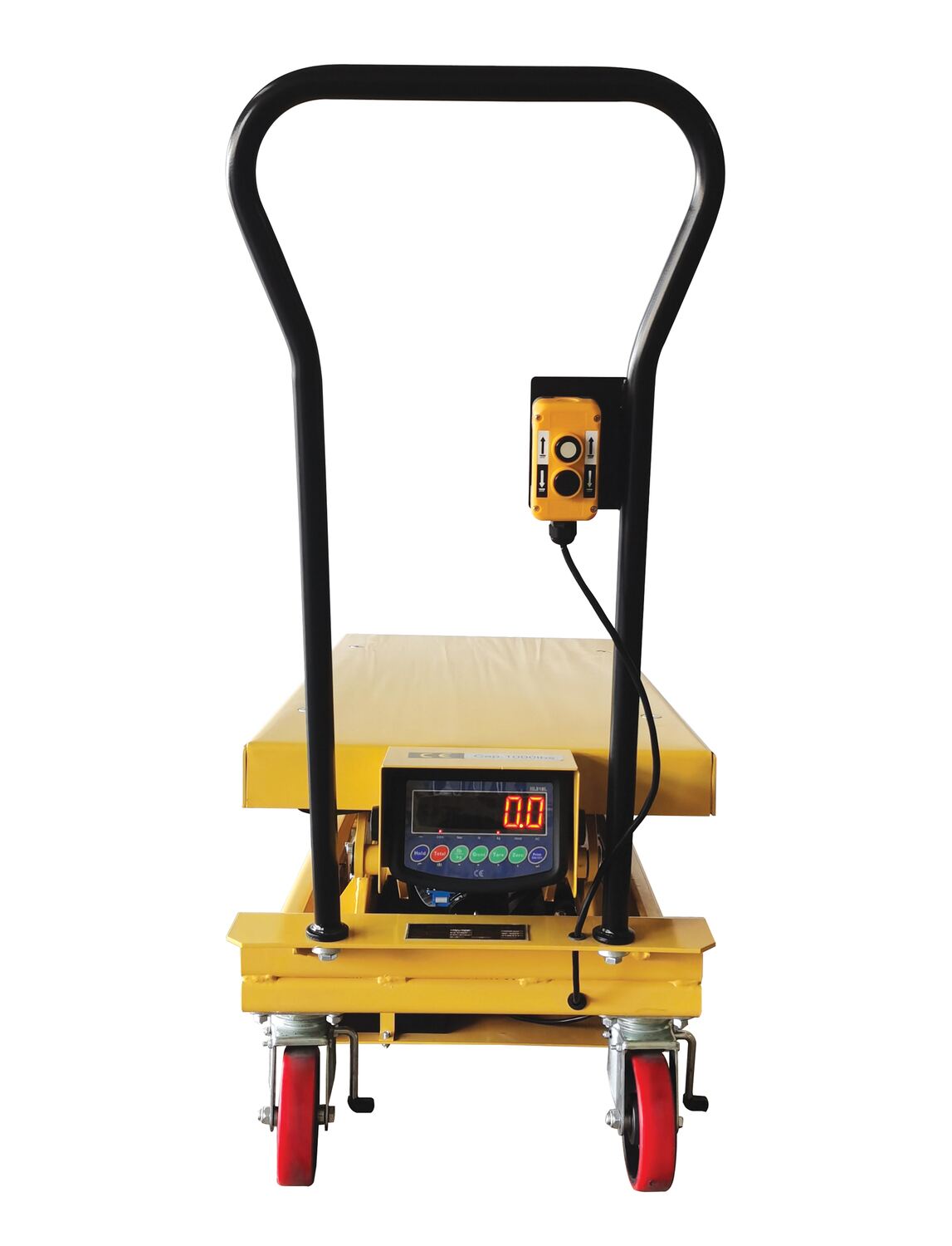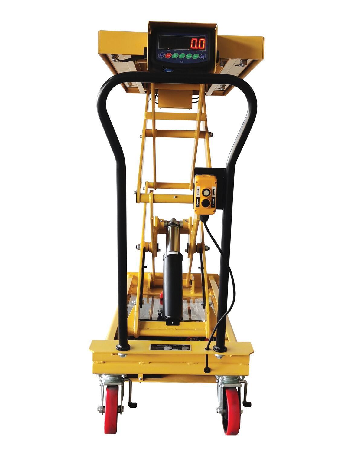 Steel Hydraulic Scissor Cart DC Powered With Scale 20-1/2 In. x 39-3/4 In. 1,000 Lb. Capacity Yellow