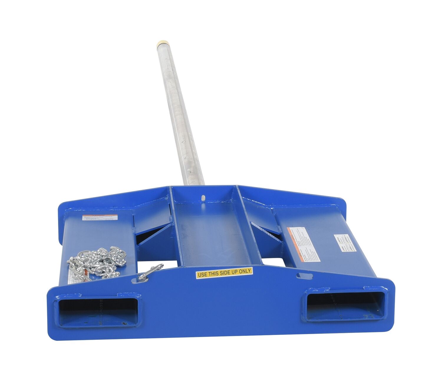 The fork mounted rug ram is ideal for the warehouse and maintenance establishments. The construction is strong and durable throughout a lifetime of use. A chain is included for enhanced security while connecting to the transporting vehicle. The ram is finished to a smooth texture to minimize edges during transport.