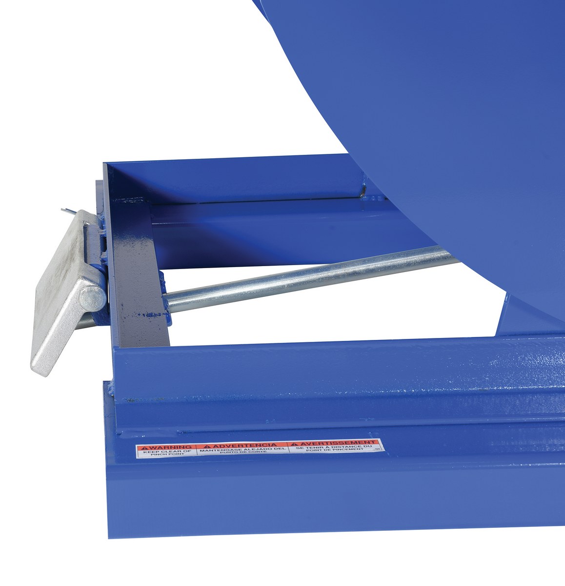 This Medium Duty self-dumping steel Hopper with bumper release automatically dumps when bumper release contacts the front of the dumpster. Hopper returns to an upright and locked position automatically after it dumps. Also includes a cable that may be operated from the seat of the fork truck to manually dump the hopper. The included safety restraint should be properly secured to a fork truck before dumping. (Length dimension is measured at top of chute.) Self-dumping hoppers facilitate compliance with OSHA general industry rule 29 CFR 1910.178(m)(5)(iii) by allowing lift truck operators to remain at the controls of their truck throughout the dumping process.