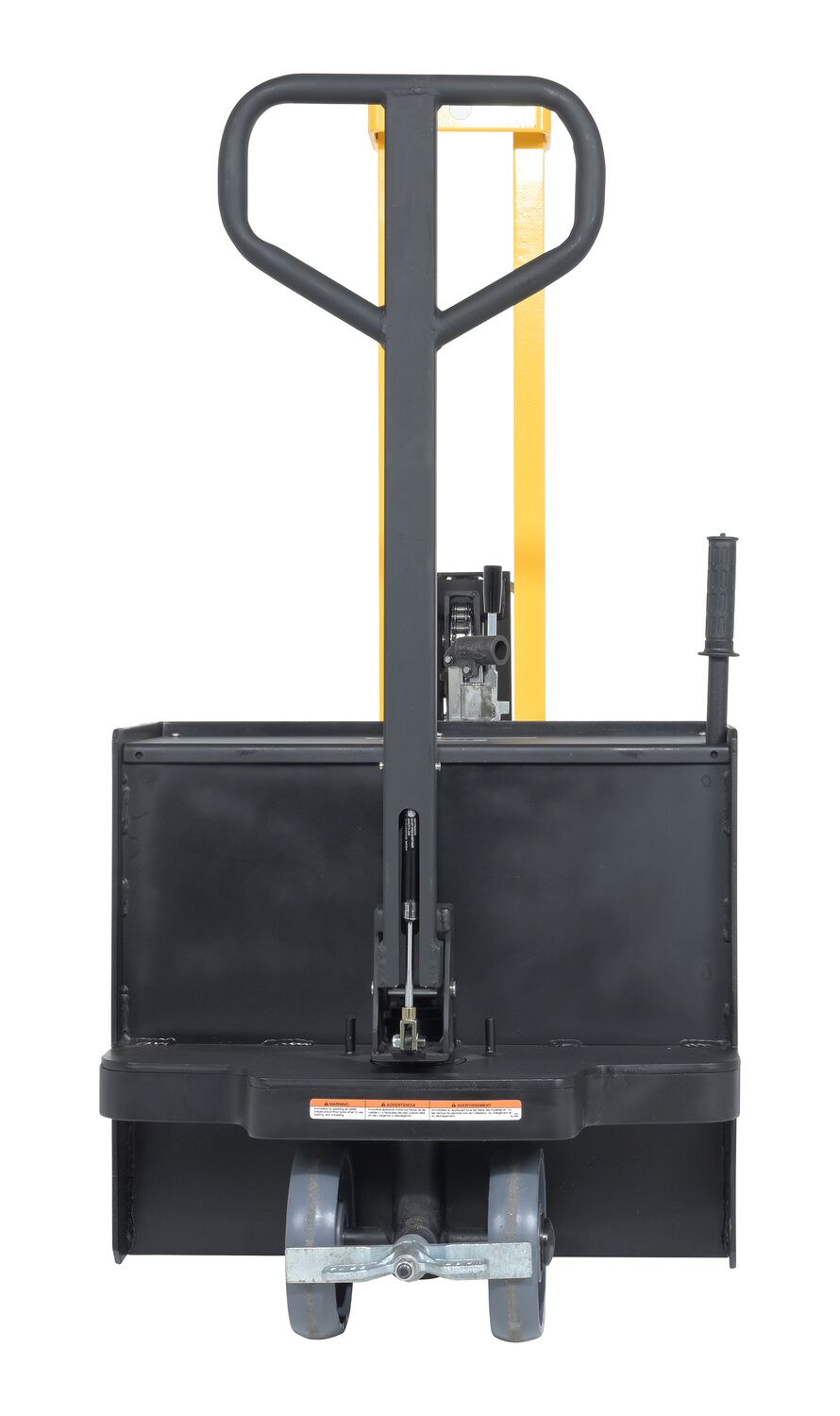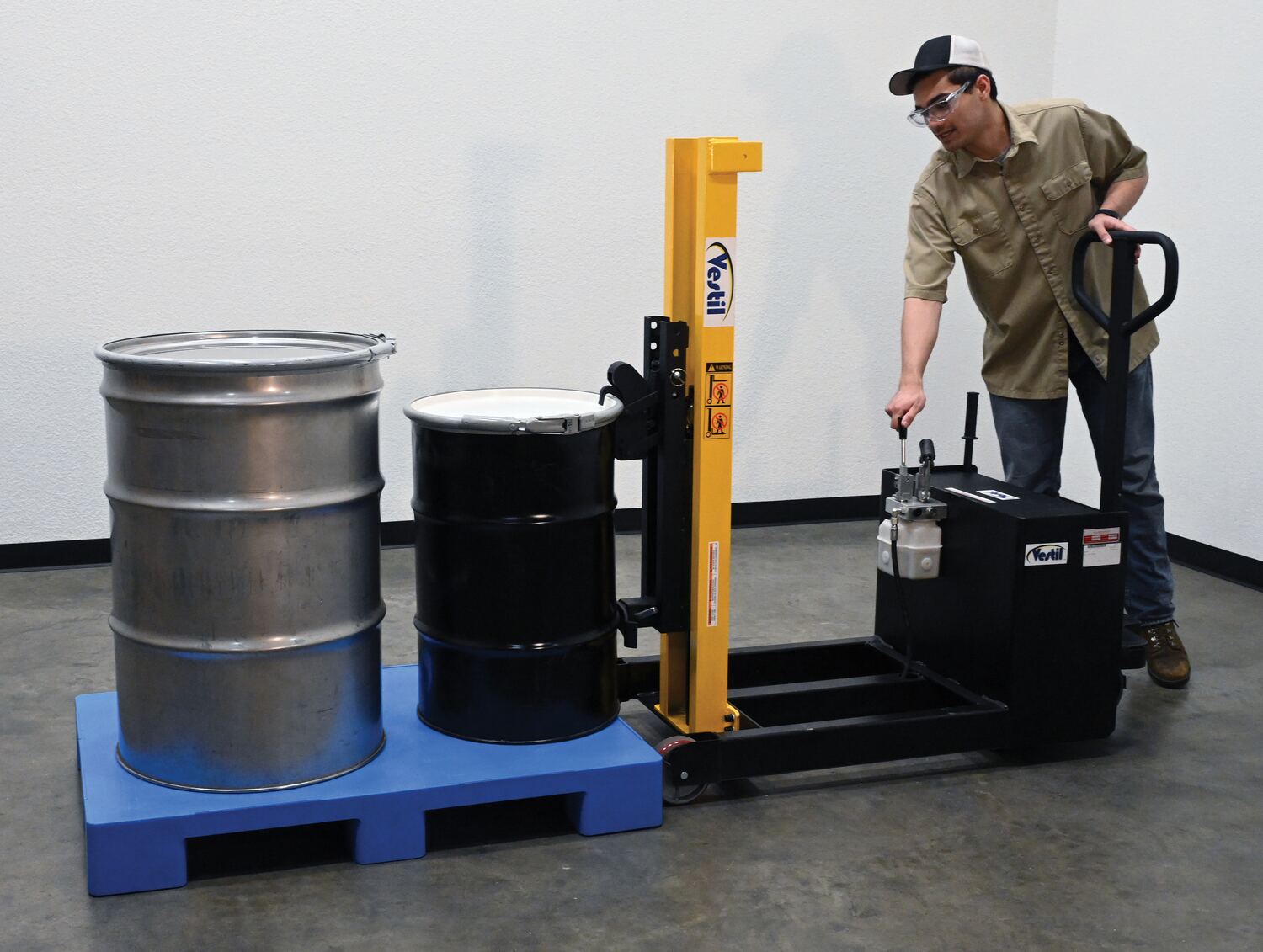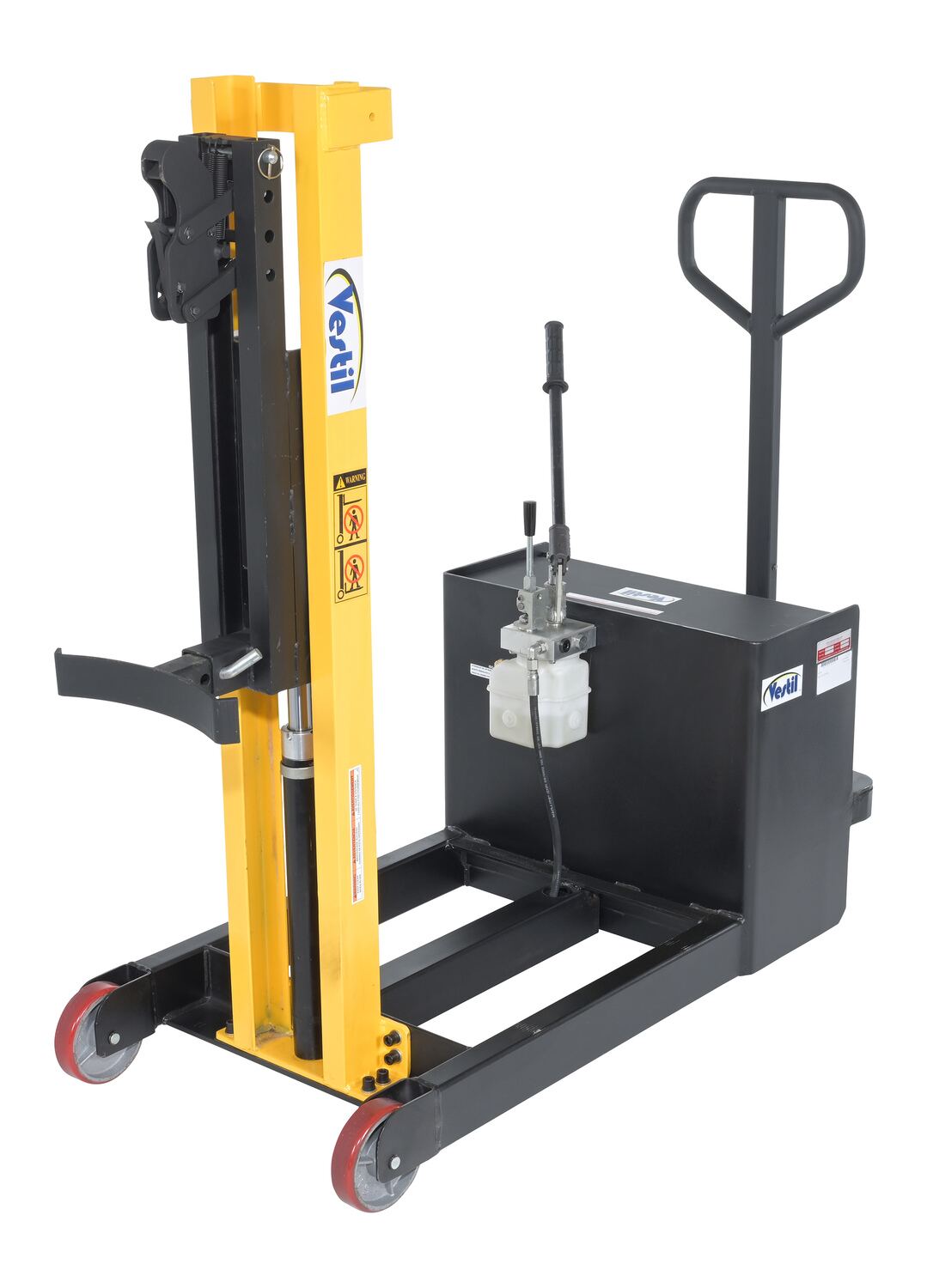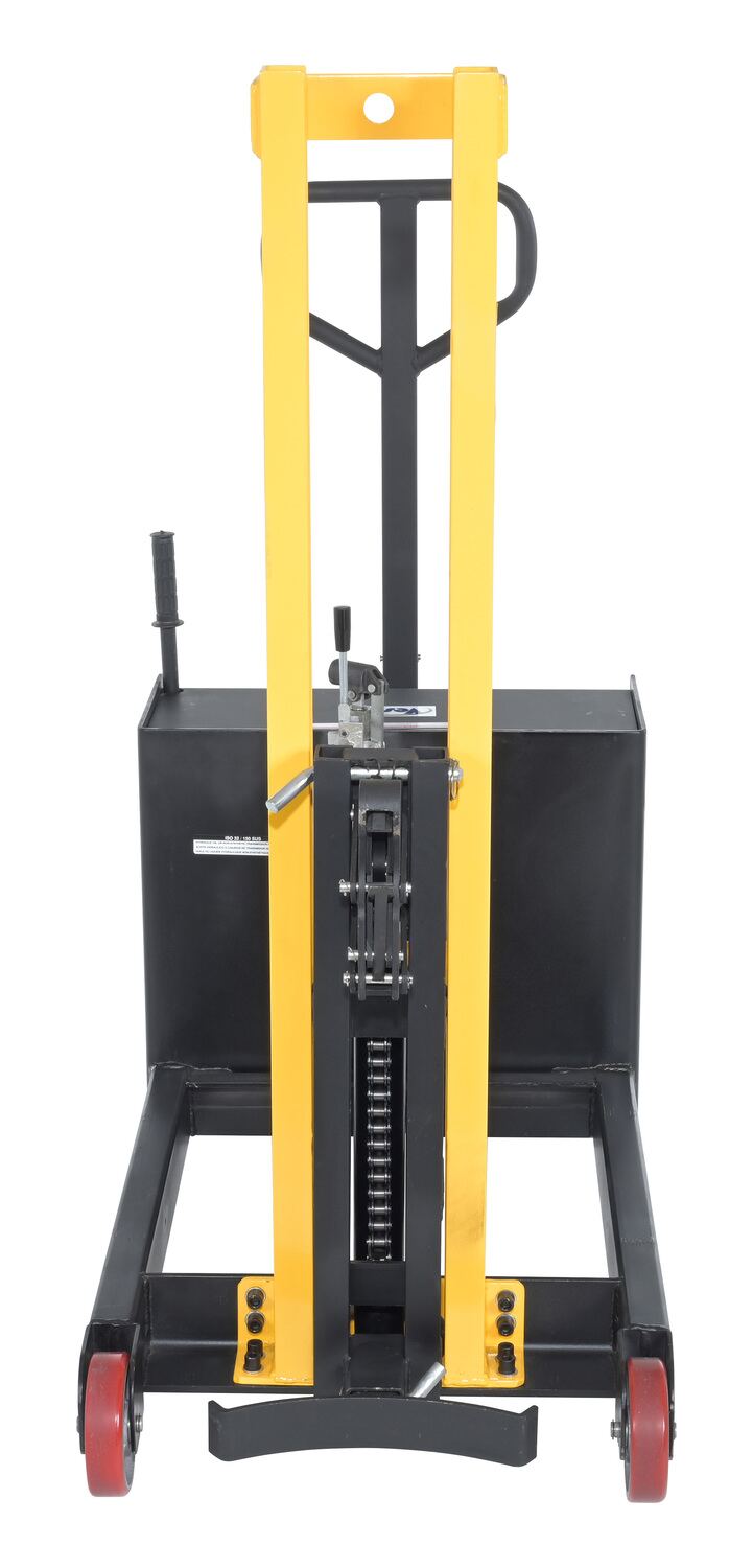 Steel Manual Drive Manual Lift Counter Balanced Drum Stacker 52 In. x 26 In. x 58 In. 700 Lb. Capacity Yellow