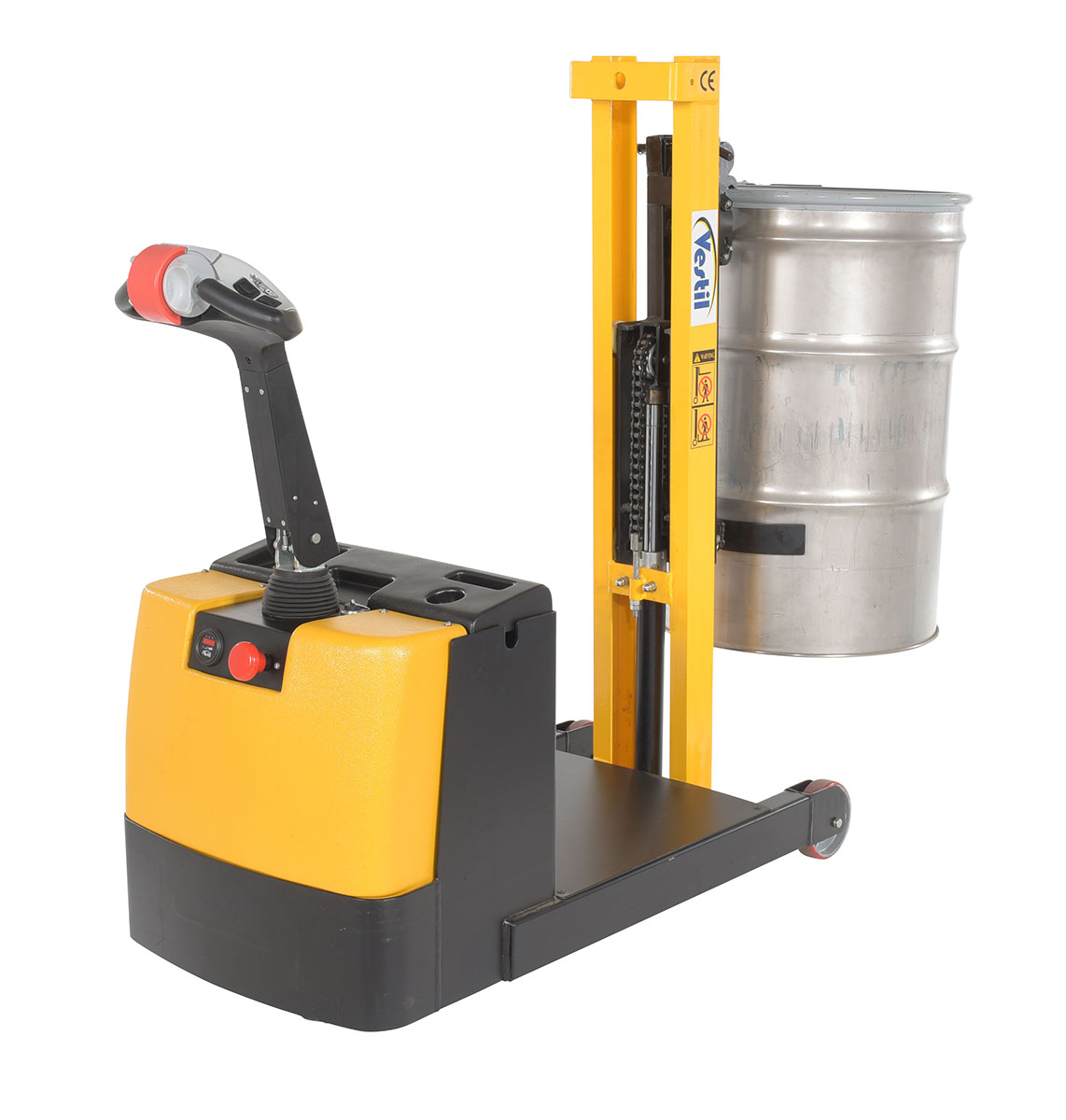 Steel Powered Drive Powered Lift Counter Balanced Drum Stacker 24V 57 In. x 26 In. x 58 In. 700 Lb. Capacity Yellow