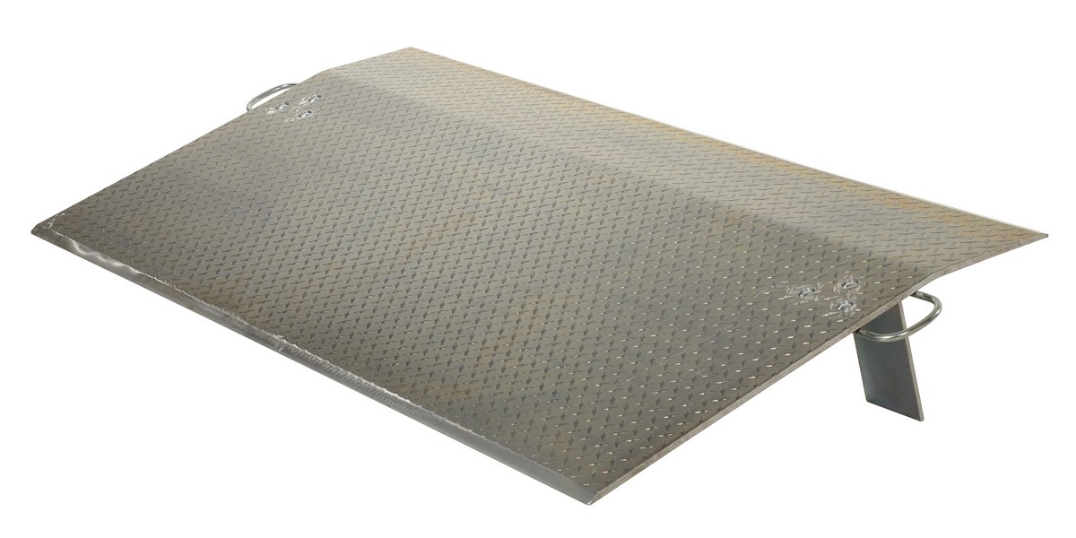 The aluminum economizer dock plate is an economical way to speed up truck loading and unloading. The unit spans the opening between dock and trailer to allow pallet or hand trucks along with traffic to safely move in and out of the trailer. This dock plate is constructed of high strength, non-skid aluminum alloy tread plate. The lightweight design with bolt on zinc plated legs and handles on each side makes portability easy. Locking legs for OSHA compliance. Not for use with fork trucks.