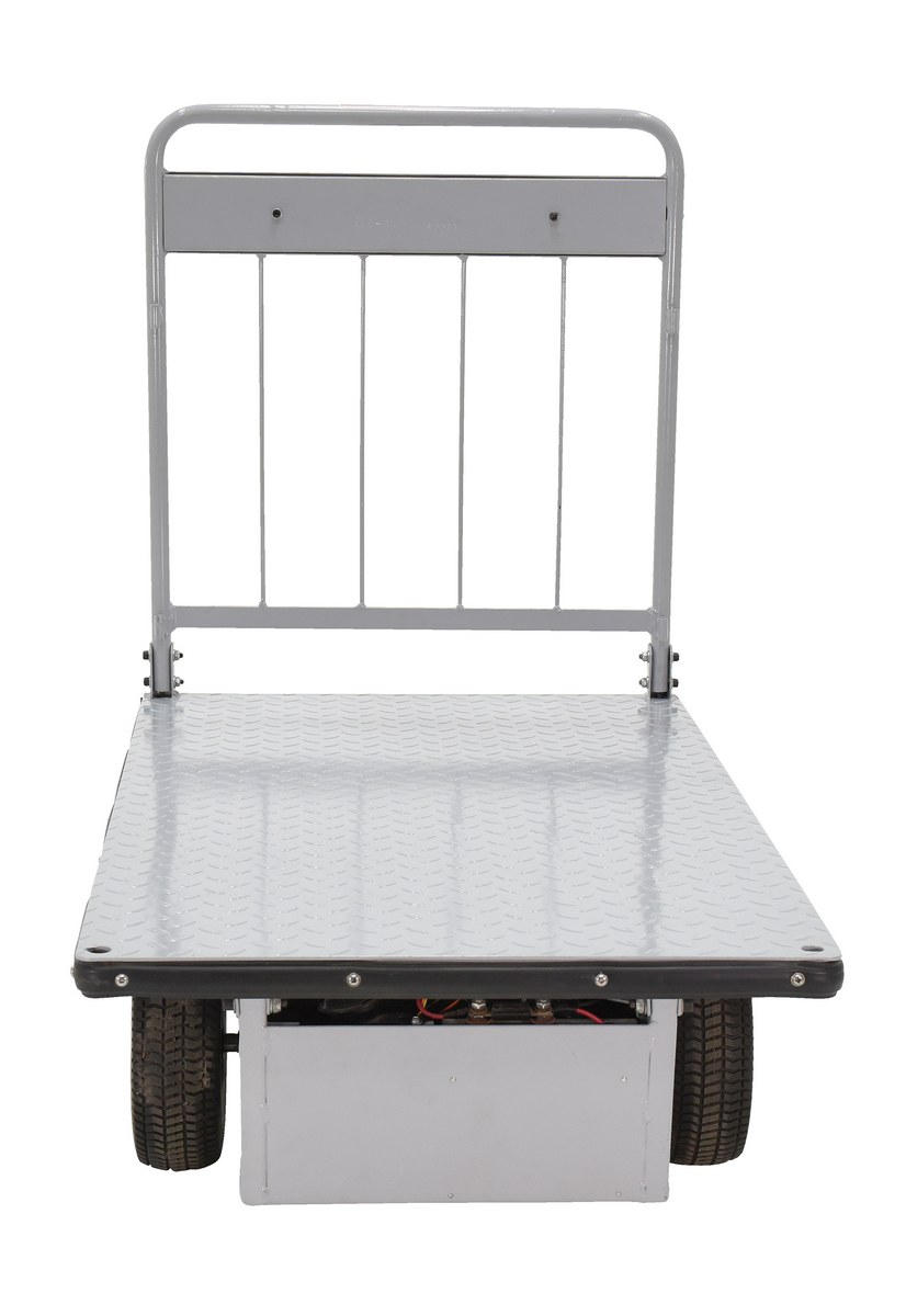 Electric material handling carts are ideal for moving heavy loads safely and easily throughout warehouses, offices, schools, and hospitals and incorporates a multitude of features to make light work of heavy loads. Reduce injury and increase productivity with these high quality carts. Features an 800W electric drive motor with (2) two 12V batteries for power and on-board 115V AC battery charger. The handle includes forward and reverse throttle control levers, an emergency reverse switch, a battery level gauge, and a slow/fast speed switch. Pinpoint turning is accurate with the mid-axle drive feature.