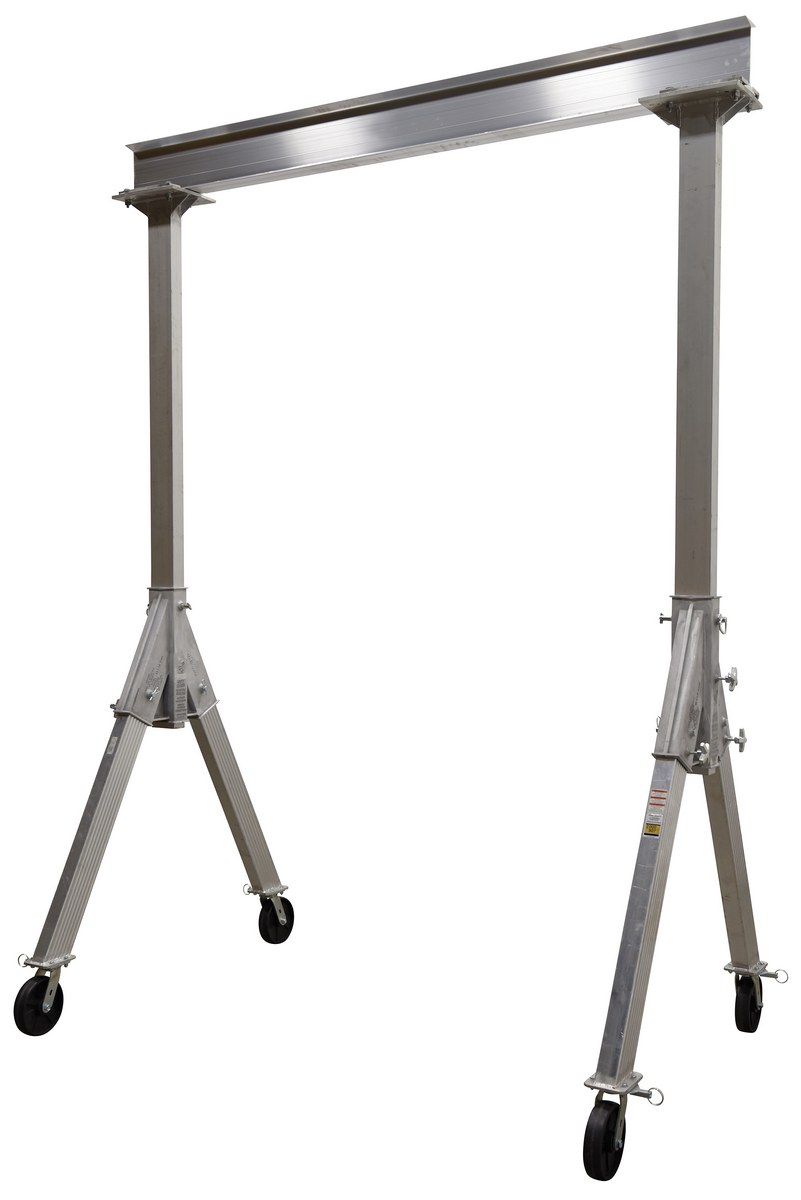 The fixed height Aluminum Gantry cranes are ideal for the manufacturing and maintenance facilities. The aluminum construction is easily manageable and can be simply assembled for immediate use. The unit has a fixed height for working in a permanent or semi-permanent environment. The casters allow the user to move the crane from workstation to workstation and smoothly roll over rough surfaces, while not marring. Do not move units while loaded.