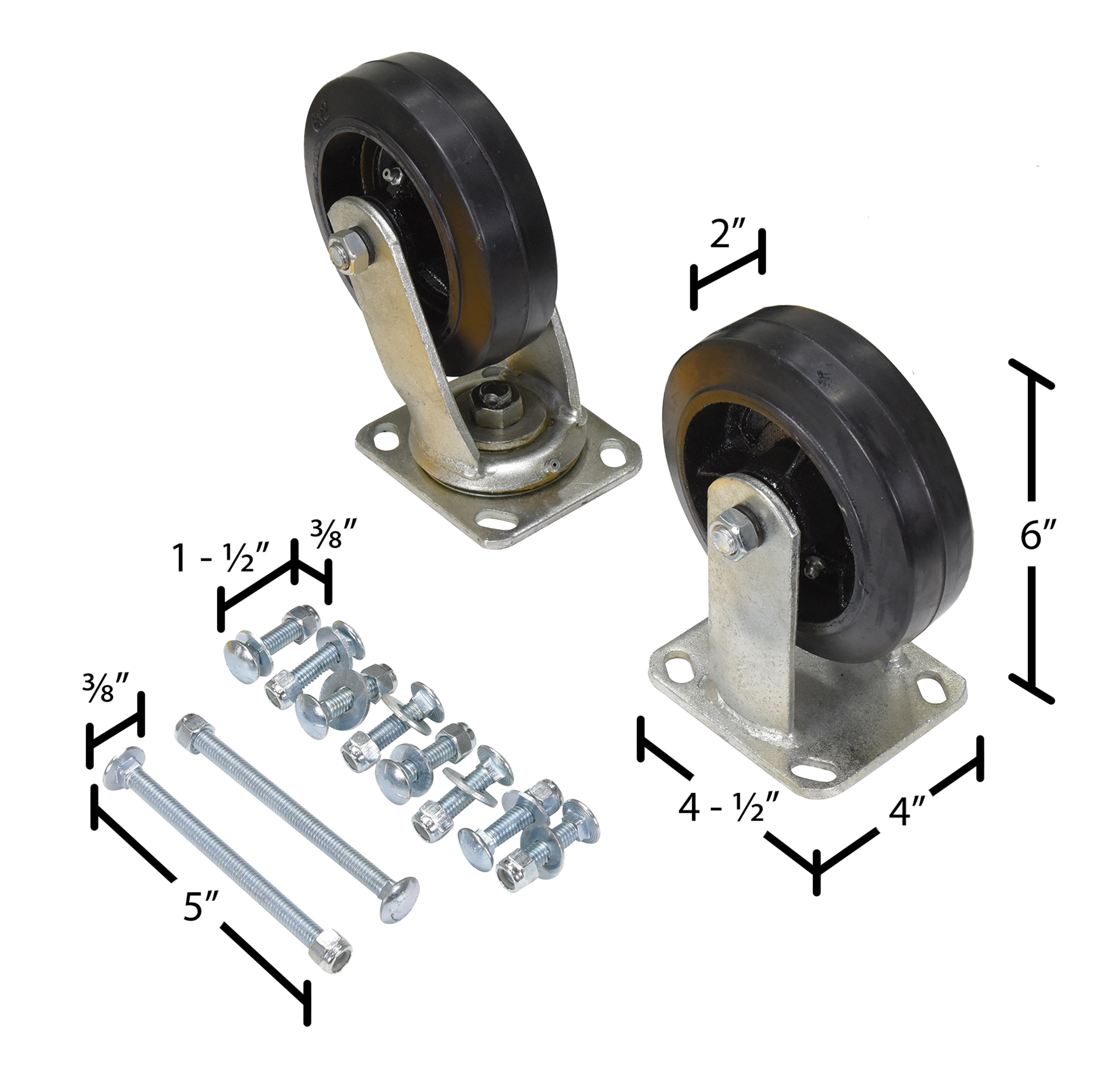 Mold On Rubber Caster Kit 6 In. x 2 In. 2,400 Lb. Capacity Black