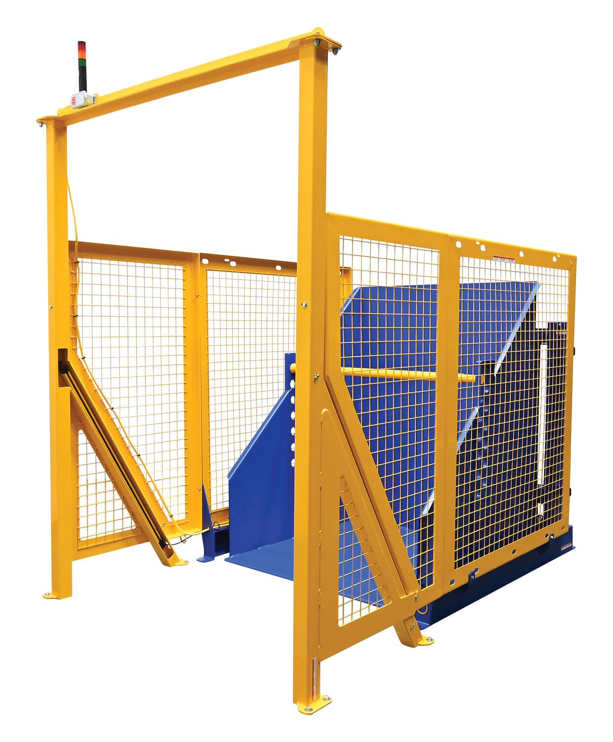 Are you looking to improve your workplace safety? Are you tired of the ordinary and want something modern? If so, try a safety light curtain! Traditional safety gates need constant interaction, which wreak havoc on production efficiencies. On the contrary, the safety light curtain is so hands off; one might forget that it's even there! The photoelectric sensor of the light curtain keeps both personnel and work areas safe, while taking the element of human error away. If one or more of the light beams is interrupted the automatic safety switch will engage causing the operation of the box dumper to shut down. With this curtain protecting the entrance to a specific work area, the layout continues to give ample room for the box dumper to maneuver and operate in its natural way!
