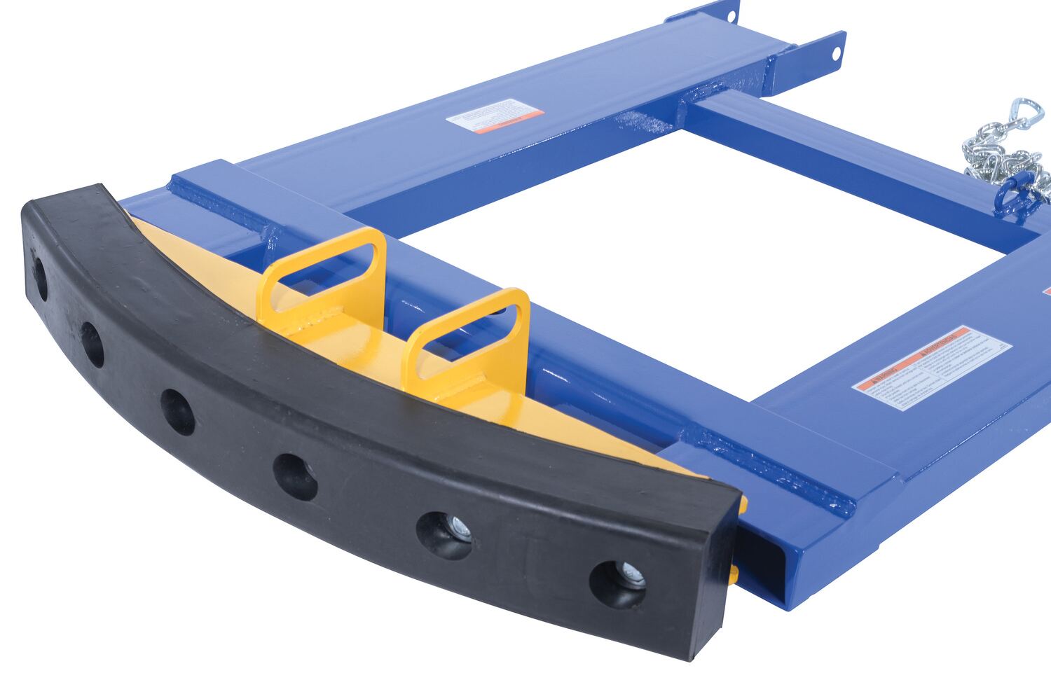 Steel Fork Truck Hook Base 32 In. Length With Steel/Rubber Push Bumper-Attachment to 2 In. Receiver 15 In. x 28 In. x 5-3/4 In Blue/YellowThis push bumper with a hook base is a nice addition to any industrial setting. With a quick and seamless attachment, the unit is able to be used immediately. The base is constructed of steel to keep up well with the wear and tear of daily use. The front push bumper, made of rubber, helps to minimize any damage and abrasion that may occur. Steel portion of unit is powder coated for built in added toughness.