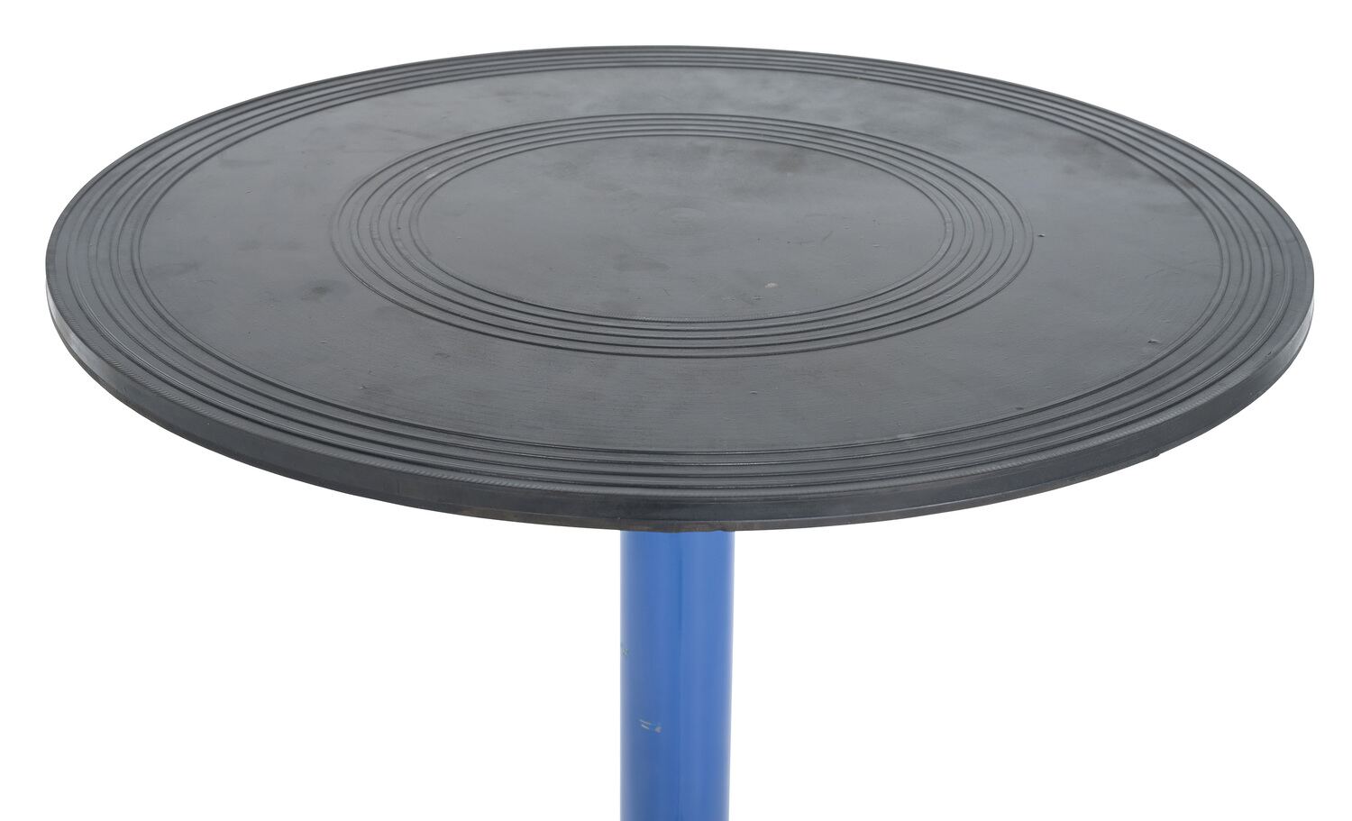Steel 24" Round Top Hydraulic Post Table 300 Lb. Capacity BlueA hydraulic post table works well in a variety of environments from lifting dies and castings to moving machine parts. The adjustable height allows the user to match their preferences with the table top. The table rolls on two swivel and two rigid casters. Brakes are included on the casters to help maintain stability during the loading and unloading process. Post table is built of steel with a powder coated finish.