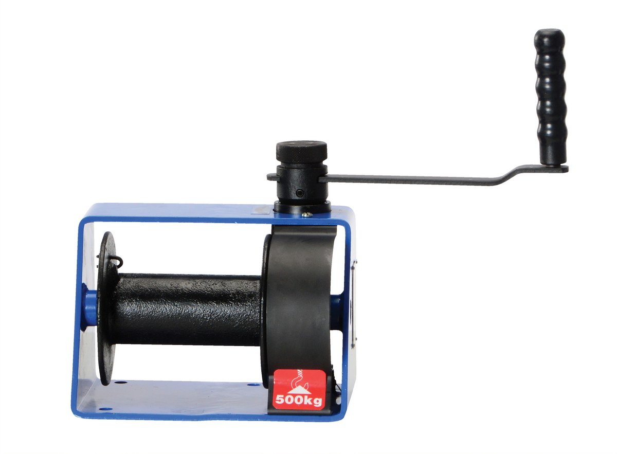 Steel Hand Winch Vertical Handle Worm Gear 1000 Lb. Capacity Blue