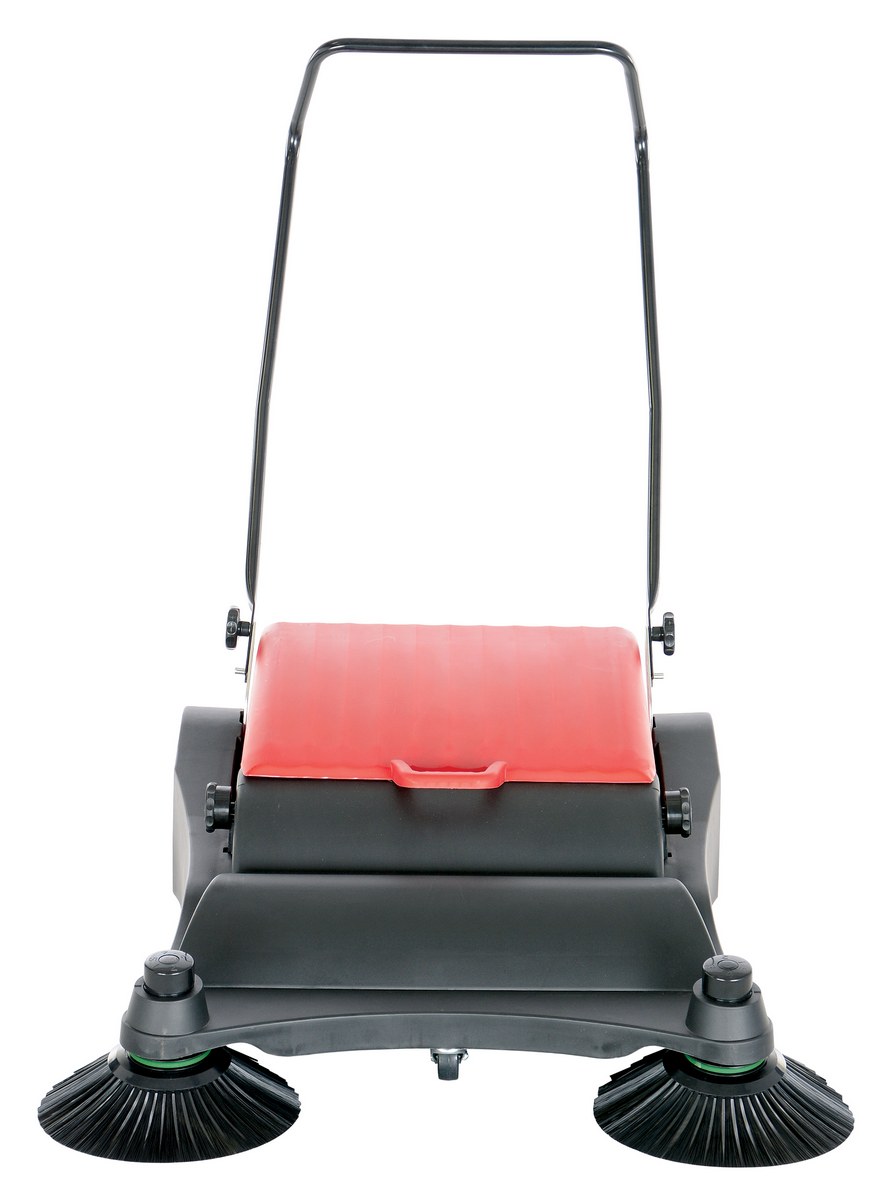 The manual brush sweeper can be used anywhere, indoors or out, on concrete, asphalt, tile and commercial carpets. This sweeper is great for parking lots, gas stations, theaters, warehouses, schools, etc. This deluxe brush sweeper has two brushes, one on each front corner come with an independent height adjustment. The bottom center brushes also feature height adjustment and the unit features a folding handle for easy storage.