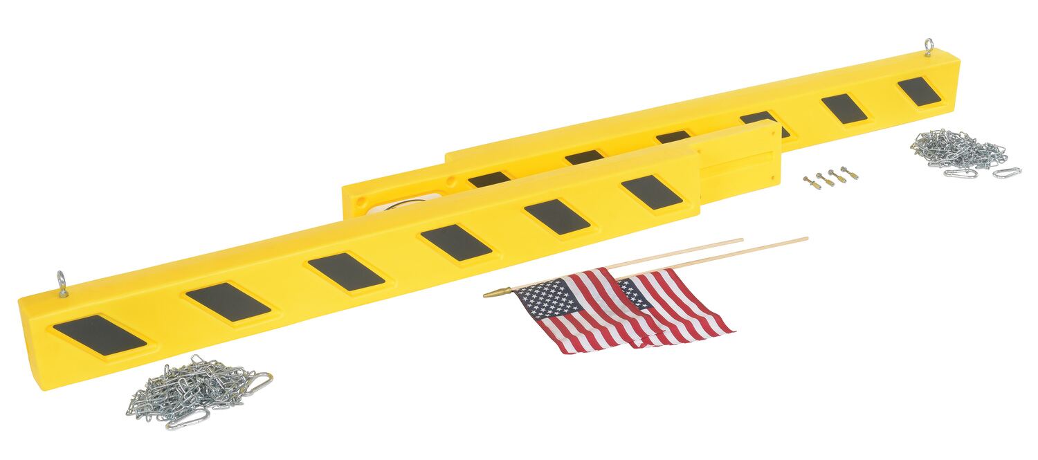 Overhead door guard protects the door and structure from unintended damage. The HDPE construction is durable for withstanding a variety of elements. Includes two 15' long chains with quick connects to hang from the barrier from the ceiling or existing overhead door track. Hardware included, assembly required.