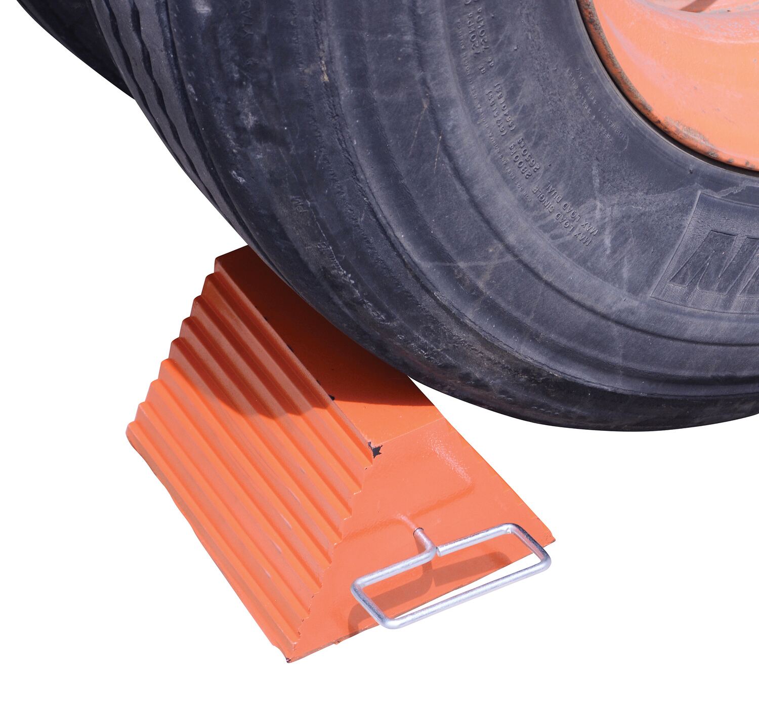 Molded Rubber Wheel Chock with Handle 8 In. x 11-7/8 In. x 6 In. Orange