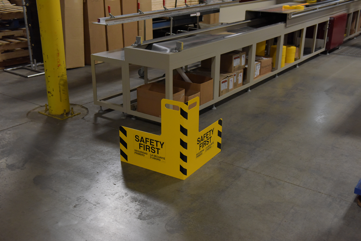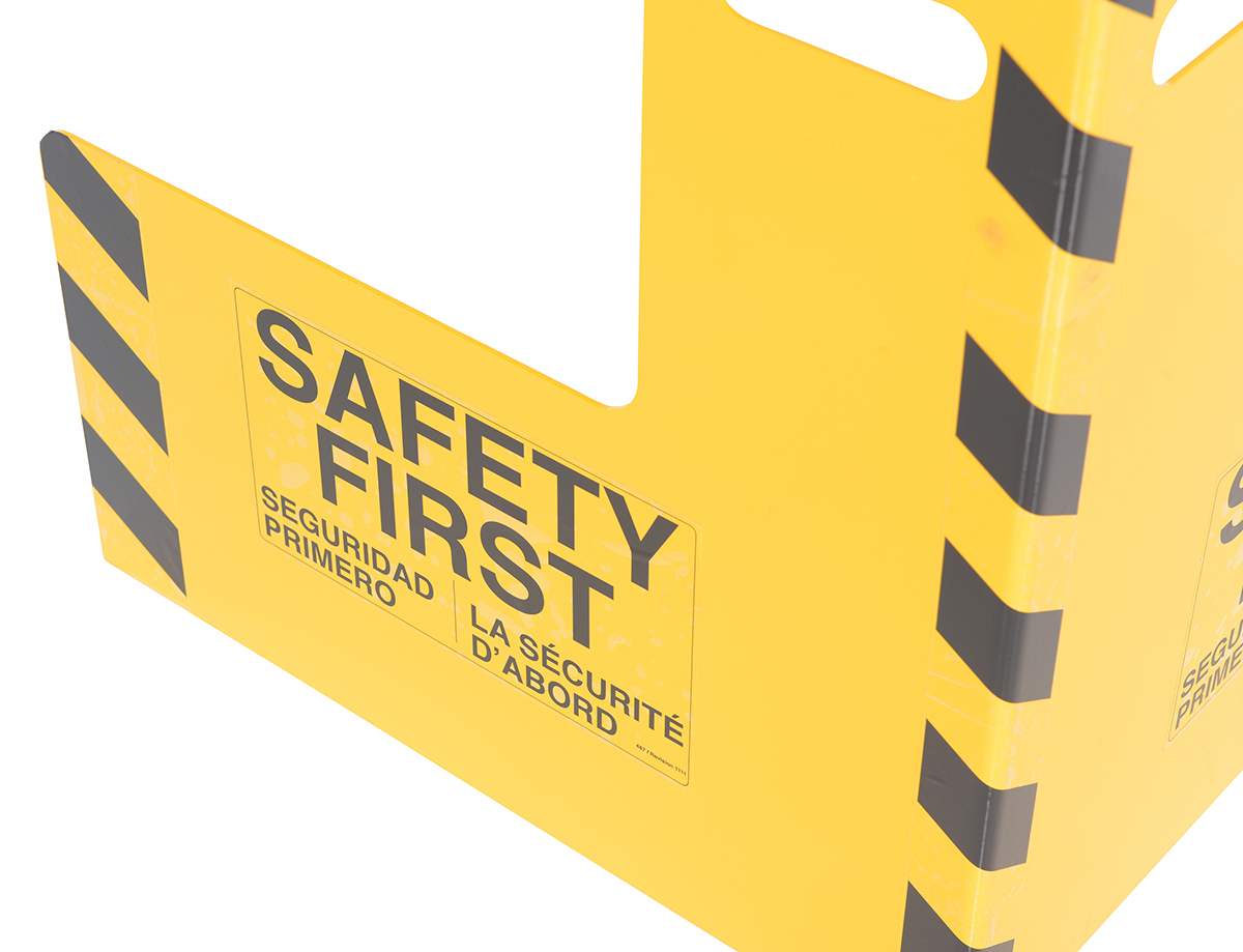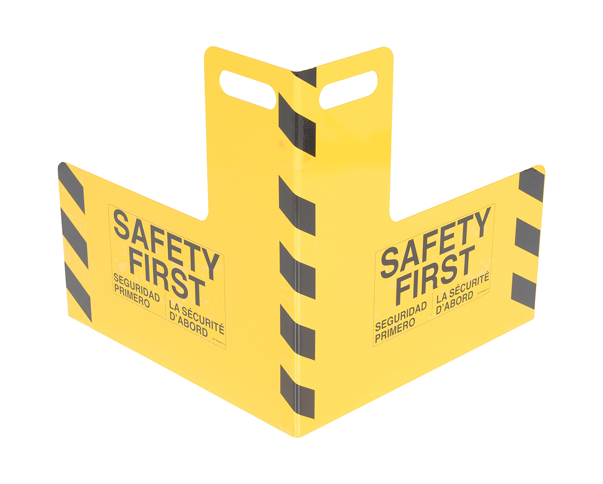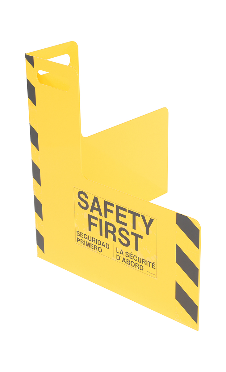 Protect busy corners, expensive machinery and personnel with this corner guard and its perpendicular protection. "Safety first" promotion reminds personnel of the number one priority. A built in handle allows for precise positioning and simple transference from area to area.
