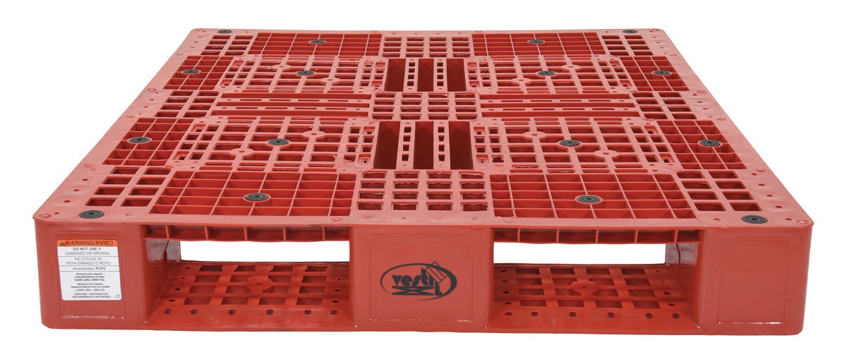 High Density Polyethylene Pallet 39-1/2 In. x 47-3/8 In. x 6 In. 8000 Lb. Capacity RedPlastic pallets are stackable for efficient storage. Made of high-density virgin polyethylene for long life. Plastic pallets are maintenance free and safer to handle than wooden pallets. Features a four-way entry and serrated deck with holes for drainage. Plastic pallets are ideal for export, pharmaceutical, medical, and food applications.