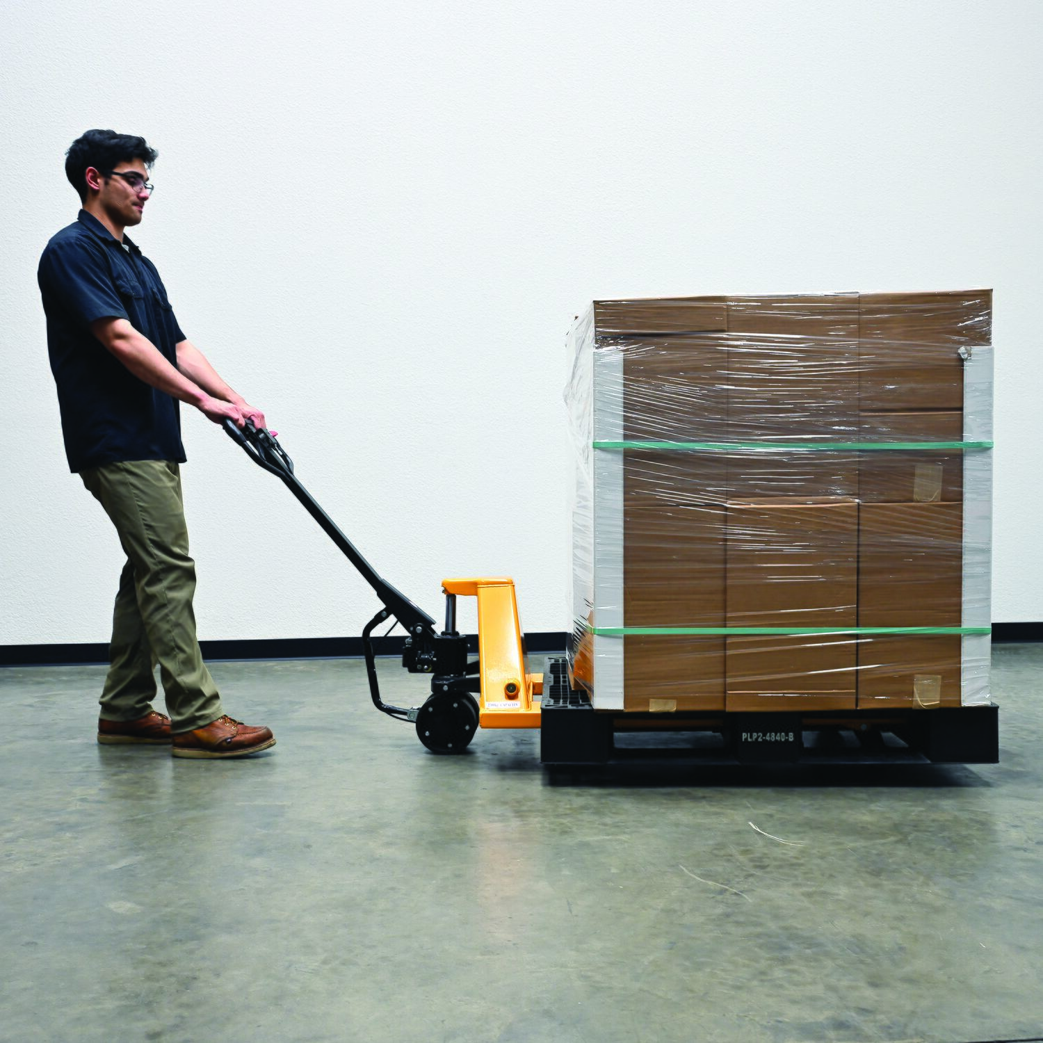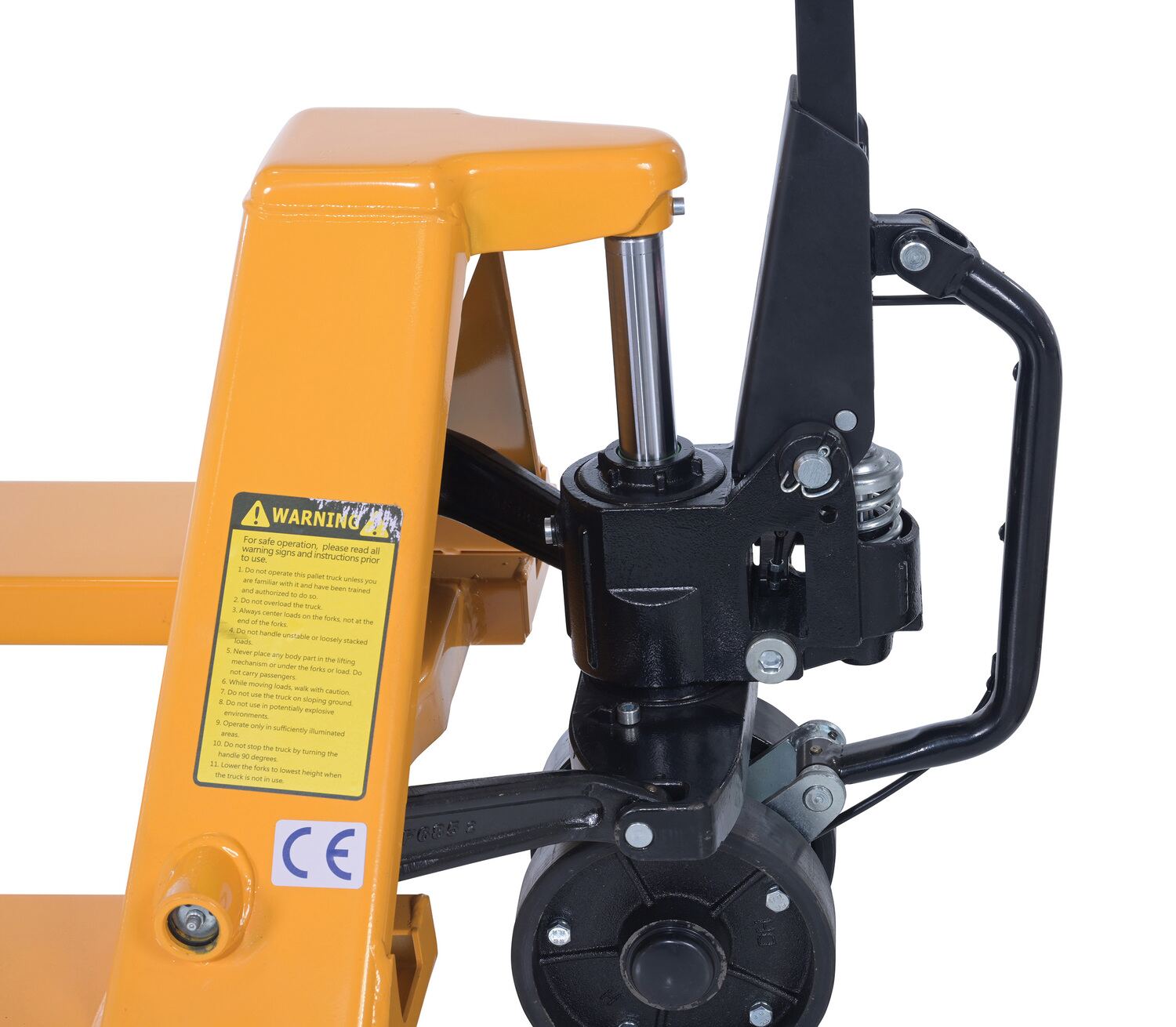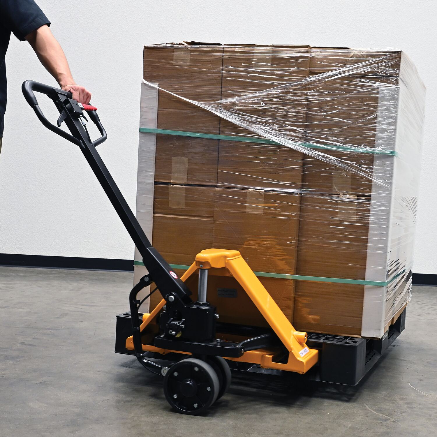 Steel Ergonomic Power Assist Pallet Truck 27 In. x 48 In. 5000 Lb. Capacity Yellow