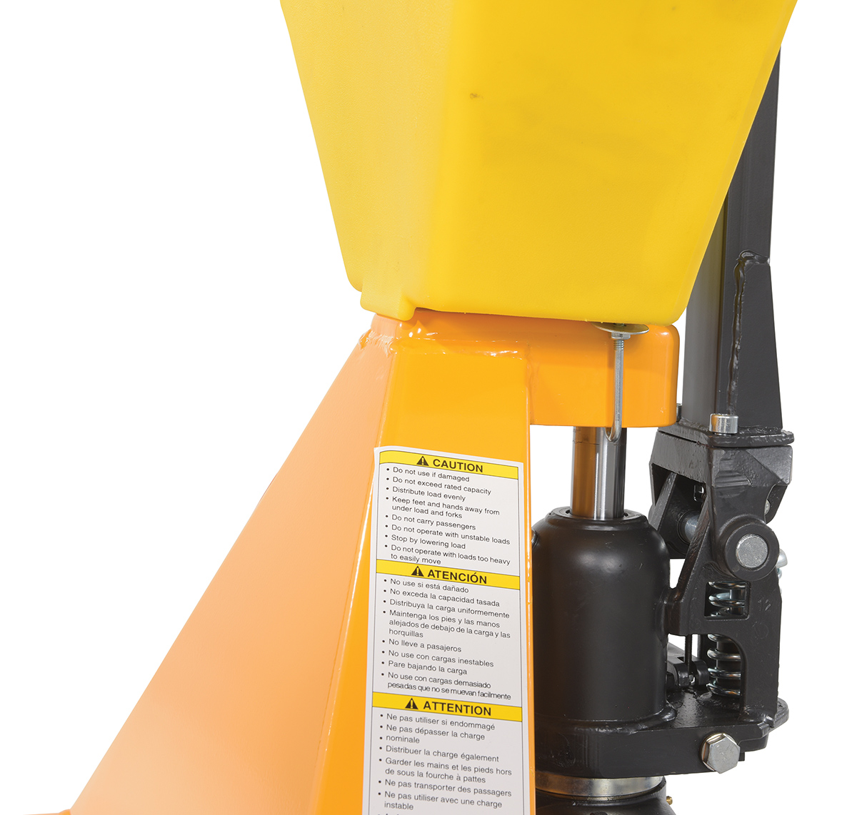 Steel/Plastic Pallet Truck 61-3/16 In. x 27 In. x 48 In. 5500 Lb. Capacity Yellow with Yellow P-Caddy