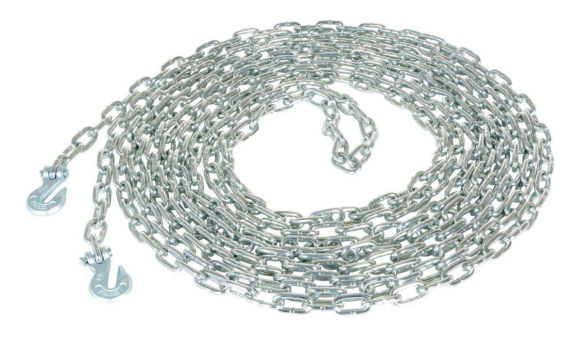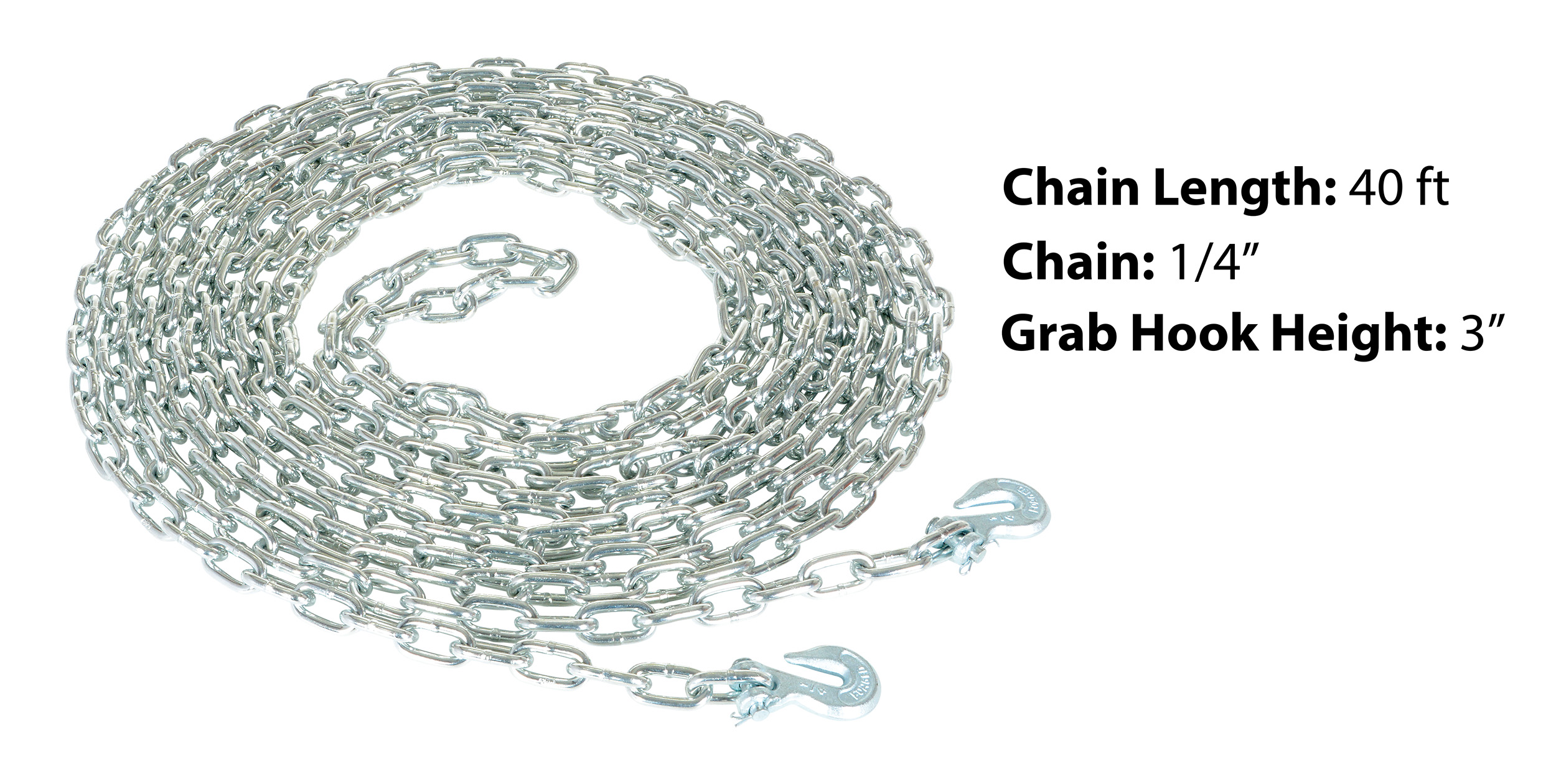 Steel Chain with Grab Hook 40 Ft. Length 1/4 In. Chain 6,000 Lb. Pulling Capacity Silver
