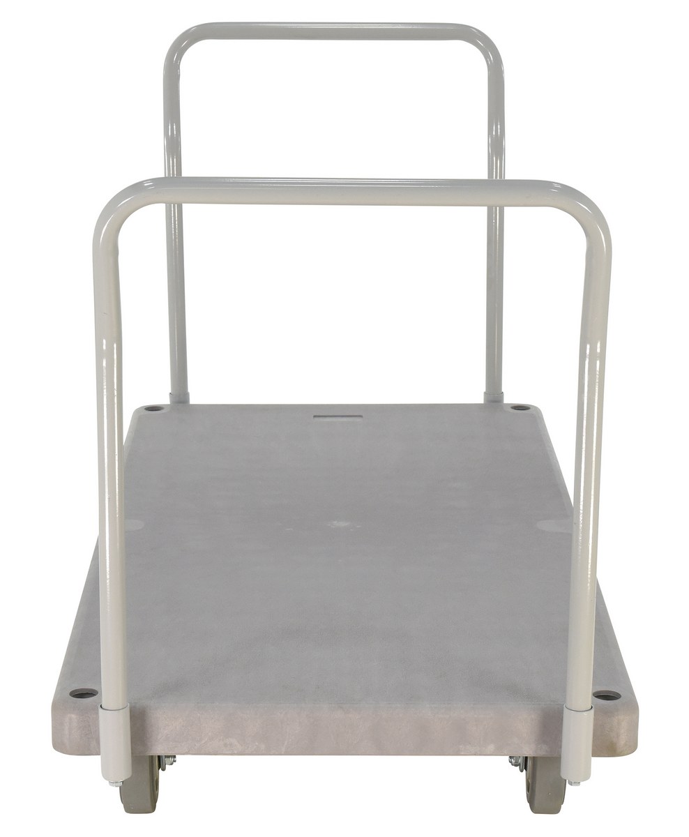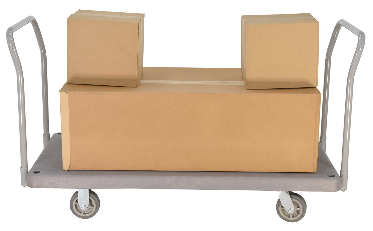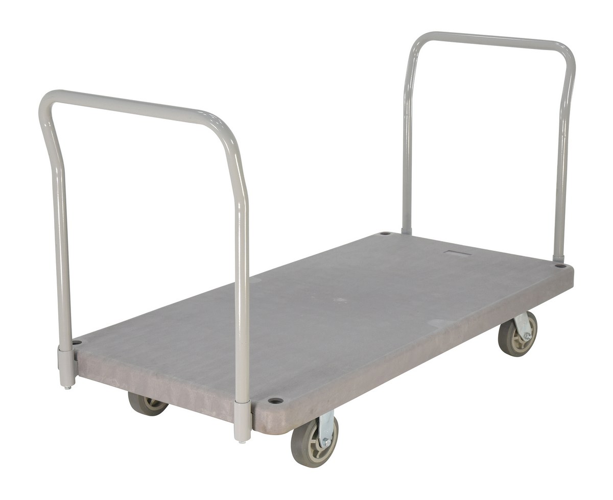 Plastic Heavy Duty Platform Truck 2 Handles 67-1/2 In. x 30 In. x 34 In. 2000 Lb. Capacity GrayThe heavy-duty plastic Platform Truck will not rust, discolor, or warp. Maintenance free and easy to clean. Honeycomb construction is reinforced for longer life. Extra square steel tube underneath platform to reinforce deck strength. This four (4) wheel unit rolls smoothly on polyurethane casters.