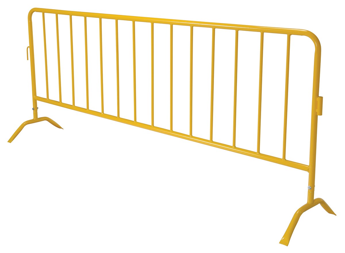 Steel Crowd Control Interlocking Barrier with Curved Feet 101-3/16 In. Length Yellow