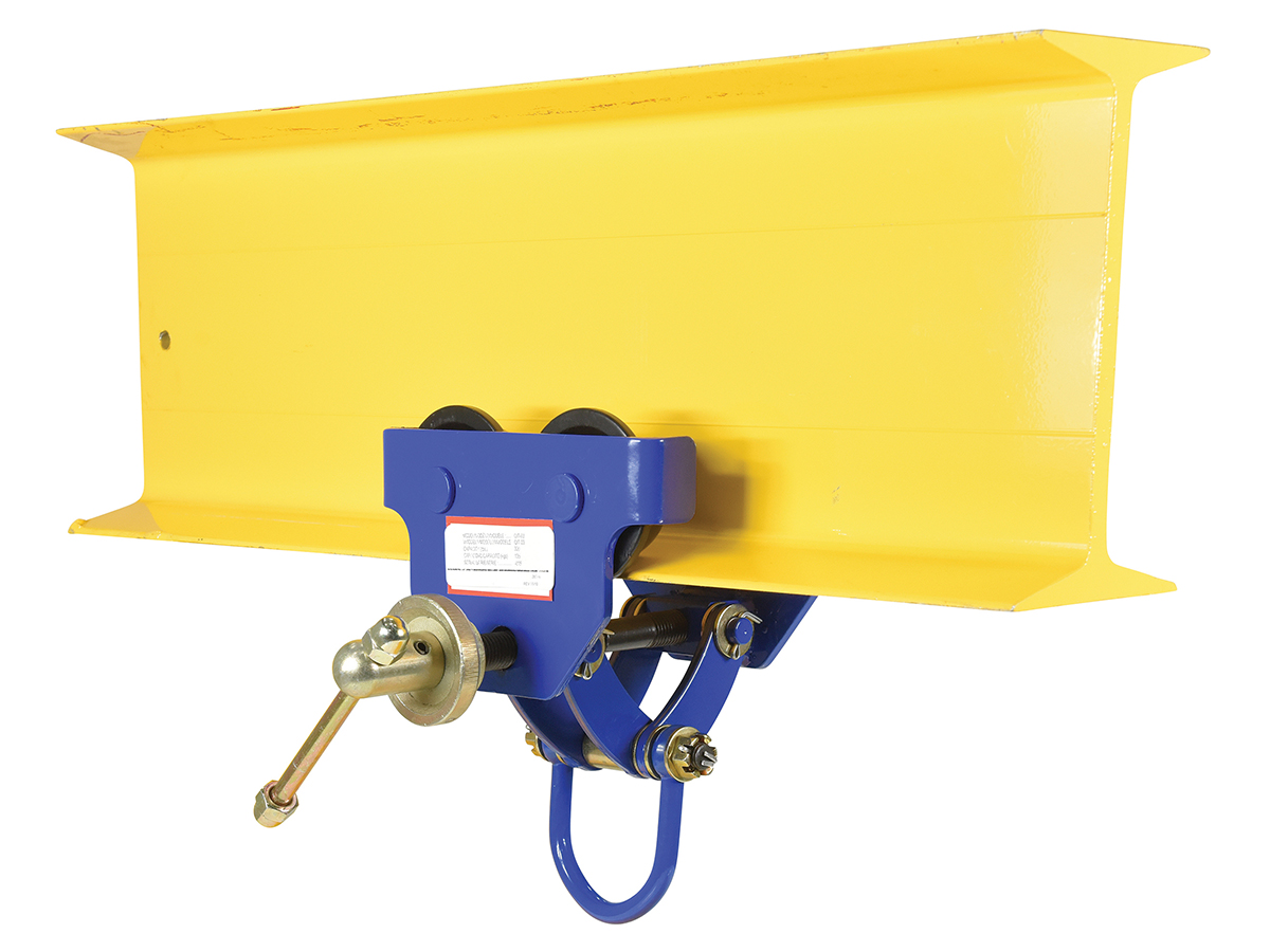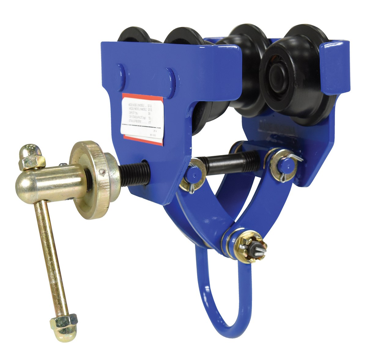 This quick install manual trolley is dependable, easy and safe to use. Designed to easily adjust to the width of virtually any S, H, W and M type I-beam. Width is adjusted with manual screw mechanism. Includes locking ring to prevent trolley width from changing accidentally. Manual screw mechanism may also be tightened to prevent trolley from moving (similar to a beam clamp). Each trolley includes four (4) rollers with sealed bearings for long life. A lifting eye is located at the bottom of the trolley for attaching a hoist (not included).