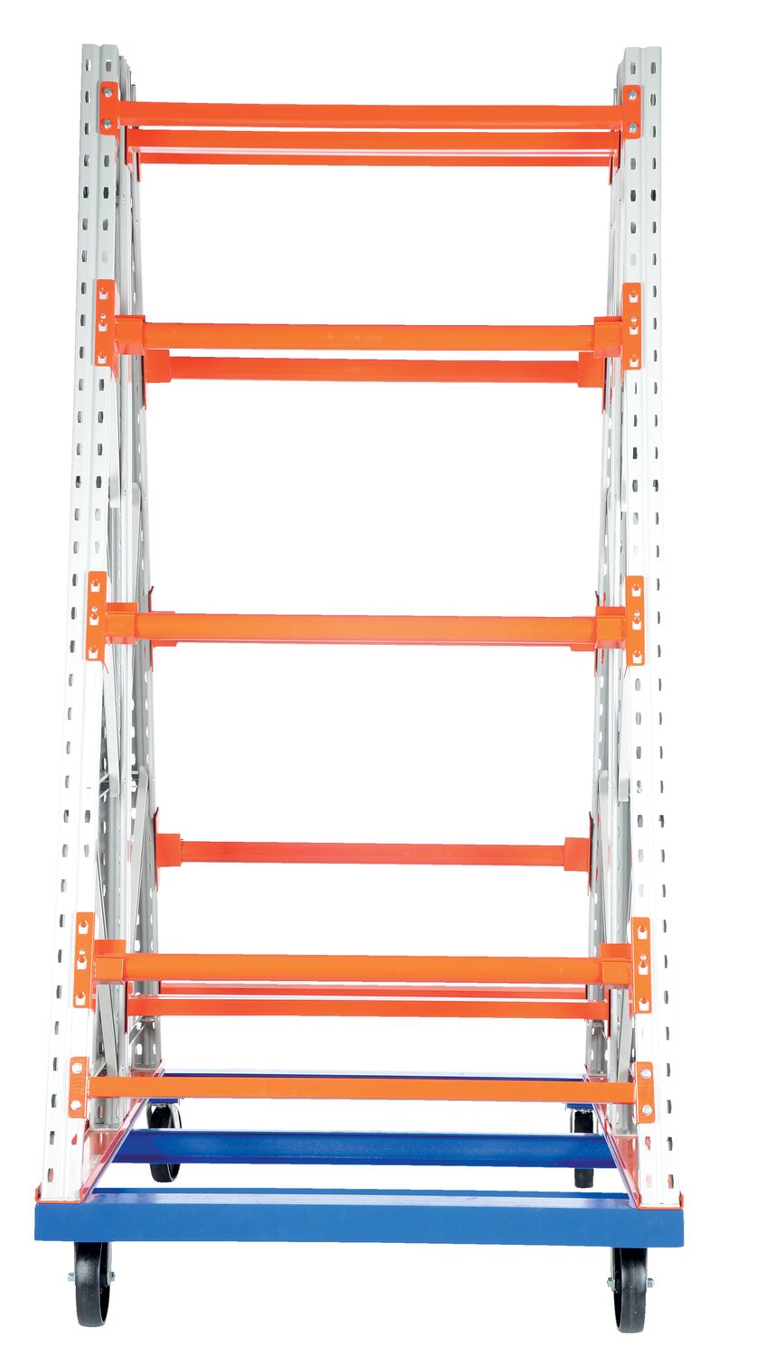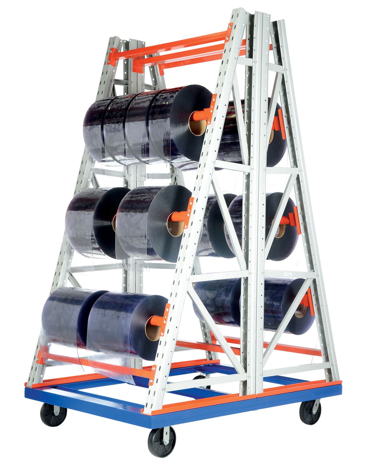 Steel Portable 2 Sided Reel Rack 72 In. x 53 In. x 96 In. 4000 Lb. Capacity White/Orange/Blue