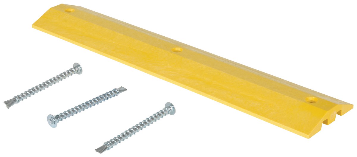 The speed bump is ideal for a variety of parking areas, both inside and out. The speed bump helps to control drivers from injuring people and property. The unit can be installed/removed by one person resulting in smooth portability. The strong recycled plastic construction can be used where traffic is frequent and can hold up to the constant day to day harm from chemicals and sunlight. Features a dual cable channel. The HD asphalt kit includes anchors, bolts and washers. The HD anchor should be epoxied (epoxy not included) into the ground and then the speed bump is secured to that anchor with a bolt and washer.