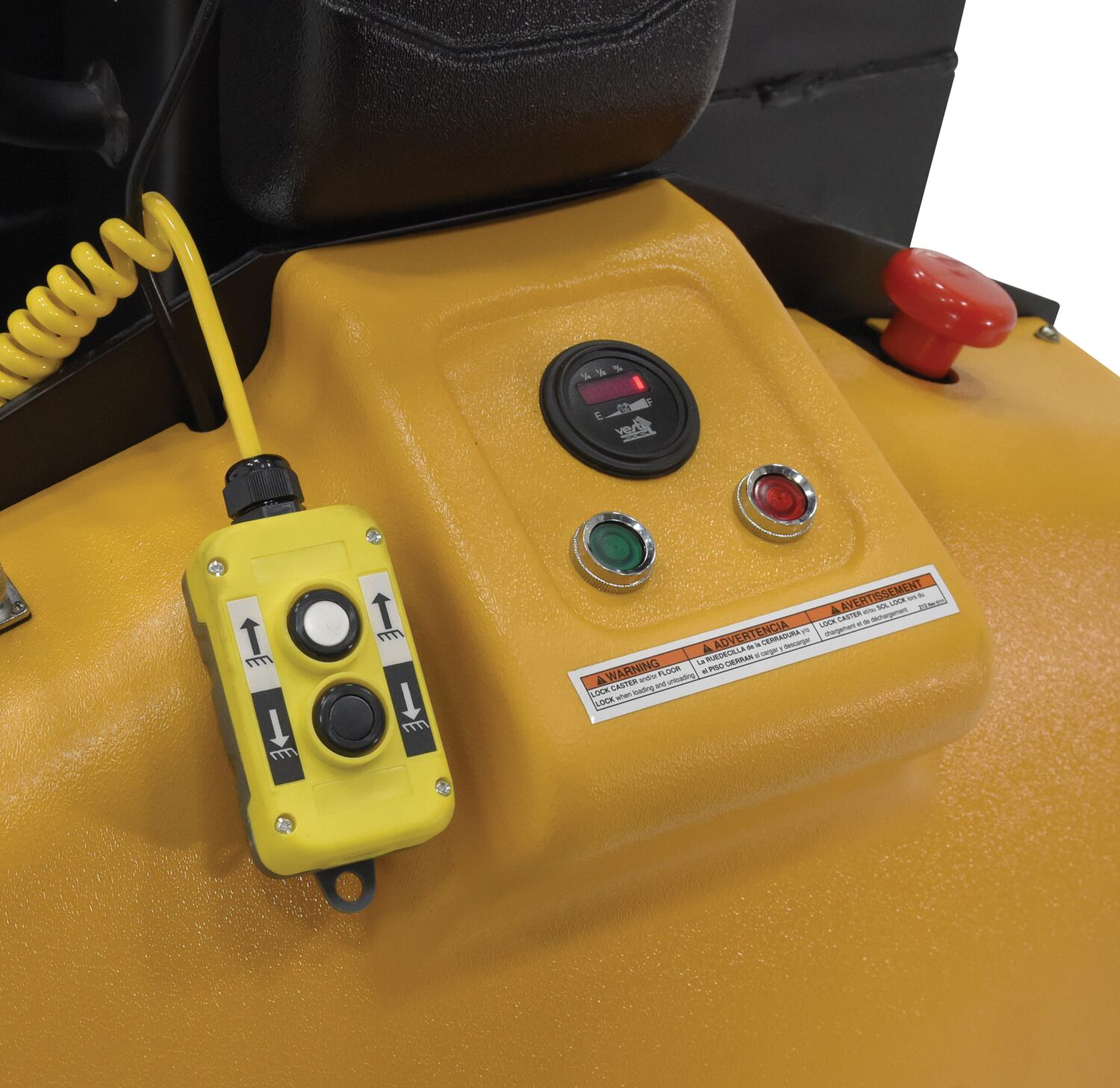 Steel Narrow Mast Stacker DC Powered 63 In. Raised Height Fixed Forks 45-1/4 In. Fork Length 1,000 Lb. Capacity Yellow