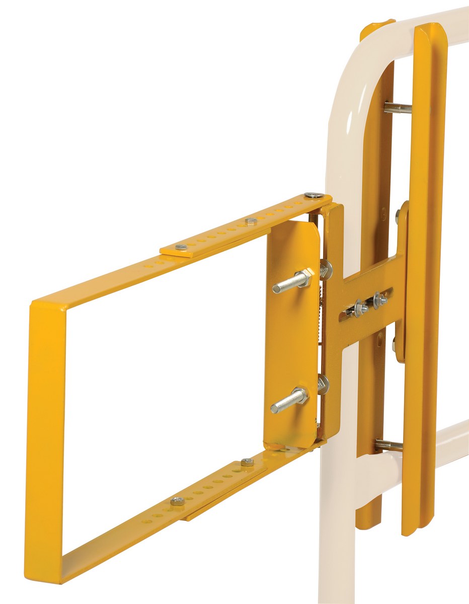 Steel Self-Closing Gate 24 In. to 40 In. Opening YellowCustomize your safety railings with a self-closing steel gate. The gate can be mounted from the left or right with the included mounting hardware. Mount to horizontal rails. Yellow powder coat finish. (Railing and base not included.).