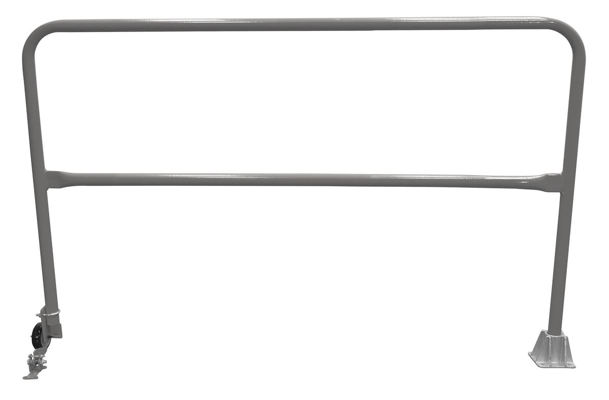 Economical safety swing gates are an economical way to protect people from dock falls. Durable railings are constructed from schedule 10 pipe (1-5/8" O.D.). Units have a top rail height of 46-1/4" and a 25" mid-rail. 4" poly-on-poly wheel allows units to be swung out of the way. Cast single socket is included.
