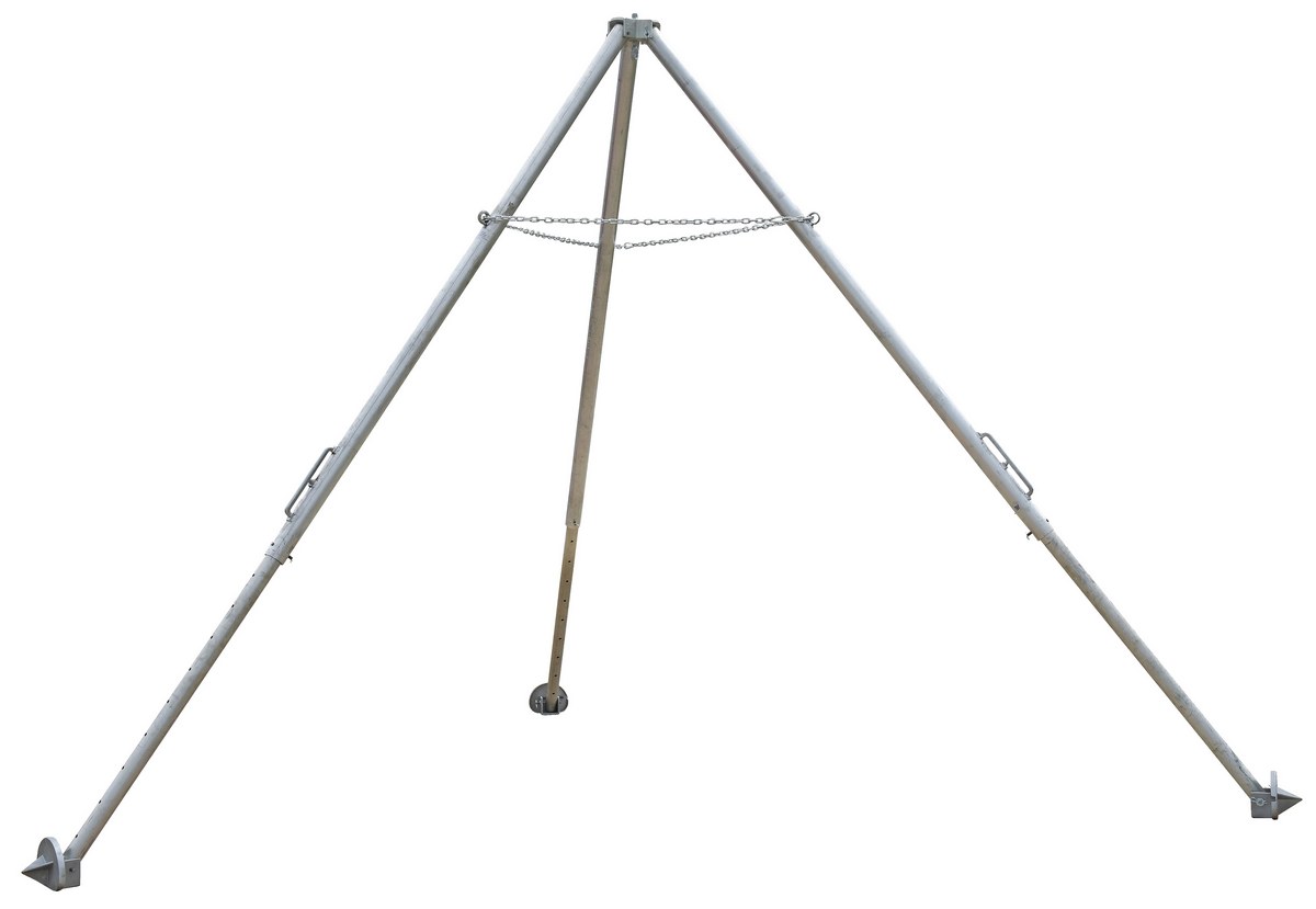 Aluminum Adjustable Height Tripod Stand 115-5/8 In. x 115-5/8 In. x 111-5/8 In. 1,000 Lb. Capacity SilverThis portable aluminum tripod hoist stand provides a convenient and economical lifting support stand. Independently adjustable legs enable use on uneven surfaces. The unit folds for convenient portability and storage. Great for access to confined spaces with adjustable height legs. Features padded pivots for smooth or spiked feet. The spiked feet are designed to be used in rough terrain. A swivel eye bolt and safety chain are standard. Chain hoist not included.