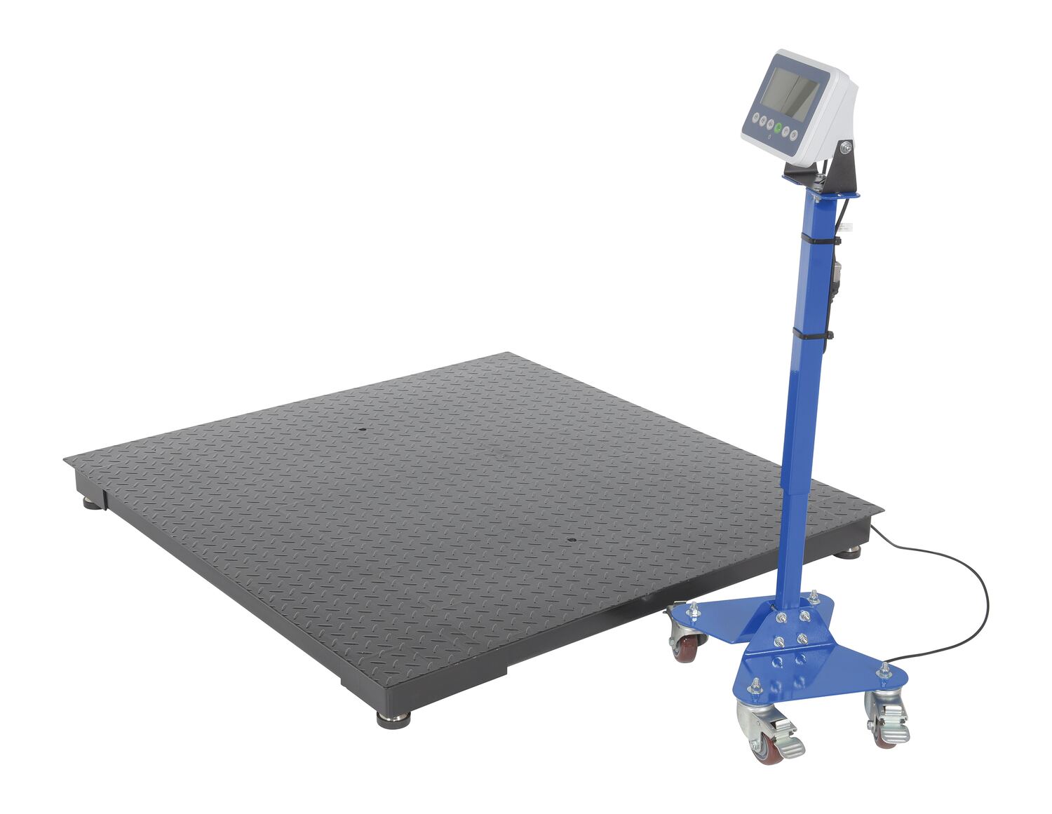 The Low Profile floor scale is ideal for shipping and receiving areas. Industrial grade heavy duty mild steel platform scale ensures durability that will withstand years of daily use. Features an anti-slip rugged steel diamond plate surface with heavy duty welded channel support. Scale has a powder coat finish and can be pit mounted or free standing. It also has adjustable leveling feet standard and operator controls for zero, tare, unit, net/gross and print. Unit converts to pounds or kilograms with a deluxe indicator.