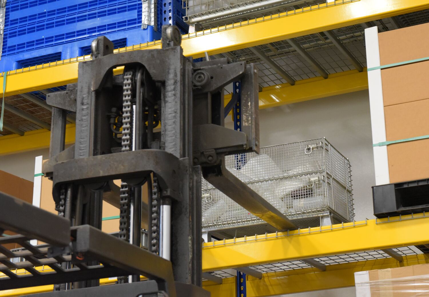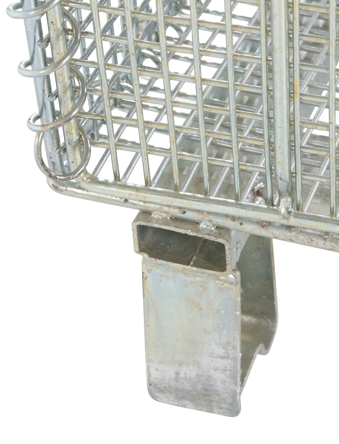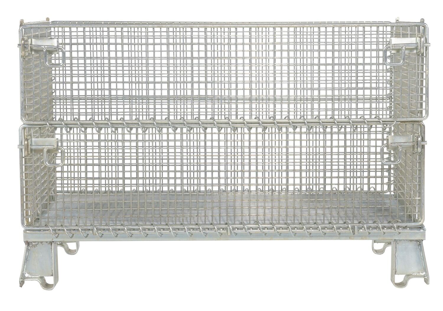 This wire containers allows for efficient storage and transportation. Legs are wrapped and welded around base to eliminate sharp edges. Container can be stacked four (4) high and has clearance underneath to allow movement by fork or pallet trucks.