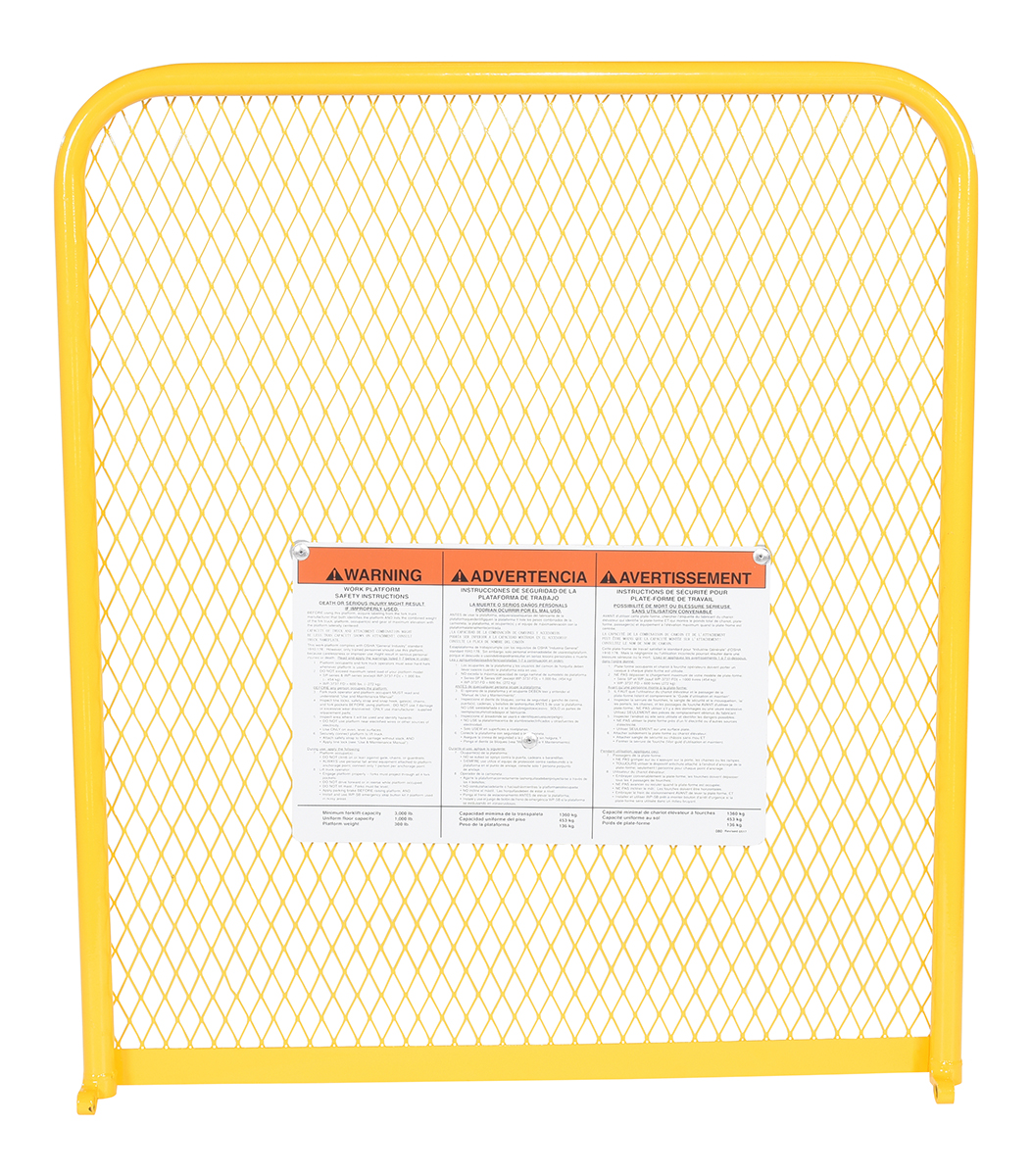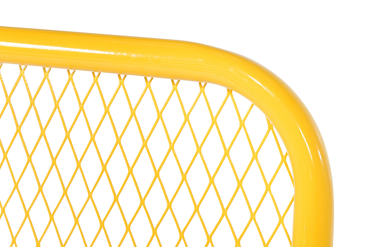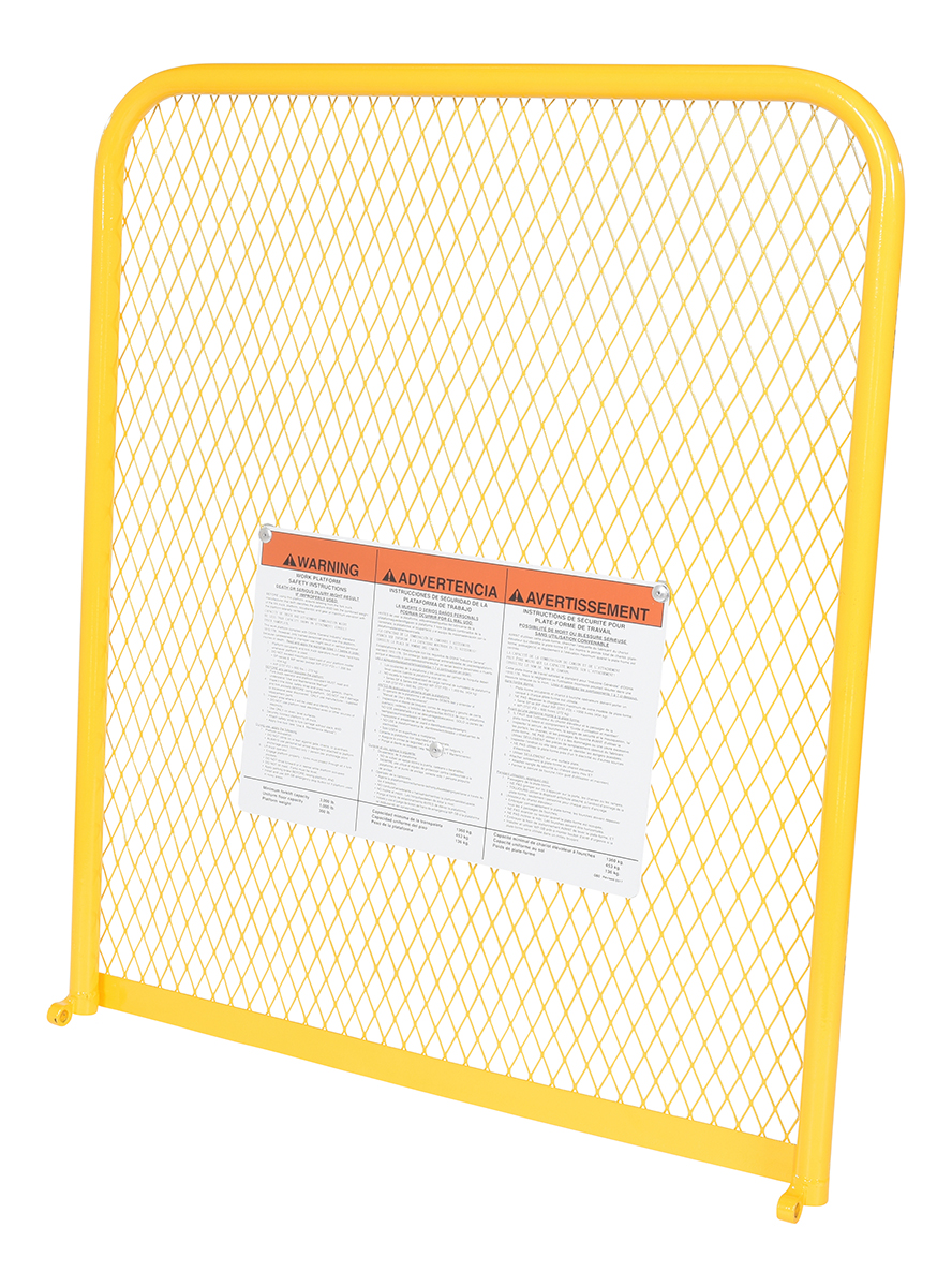 The expanded metal back is a great addition to the work platform. The extended back adds extra security for the user to function comfortably. The extended back has a yellow finish for clear visibility. Not compatible with WP-ca.