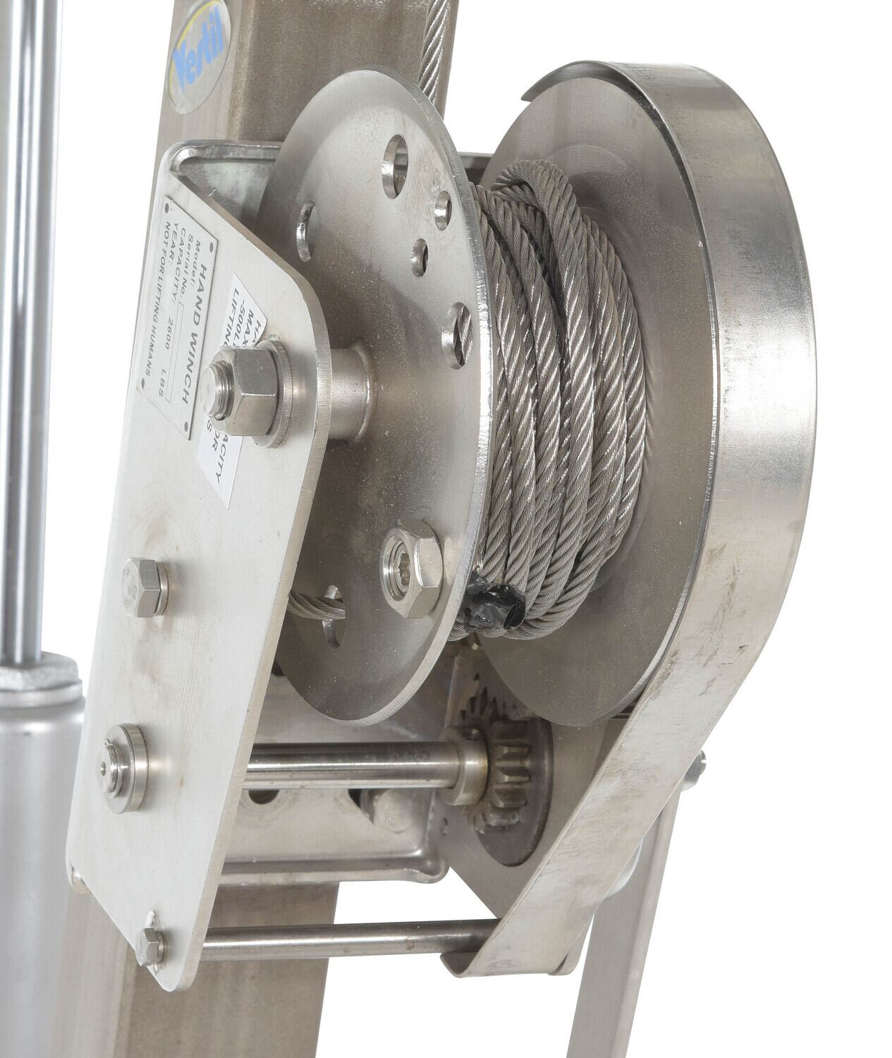 This Stainless Steel winch operated truck Jib crane lifts items from ground to truck bed height, then rotate into cargo area. Includes telescopic boom design with manual hydraulic hand pump to pivot boom up and down. Manual cable winch to lift and lower loads. Unit comes with one grab hook, one chain slot lock, and one sling hook with latch. Unit is designed for vertical lifting only. Do not use unit for lifting personnel or overhead lifting.